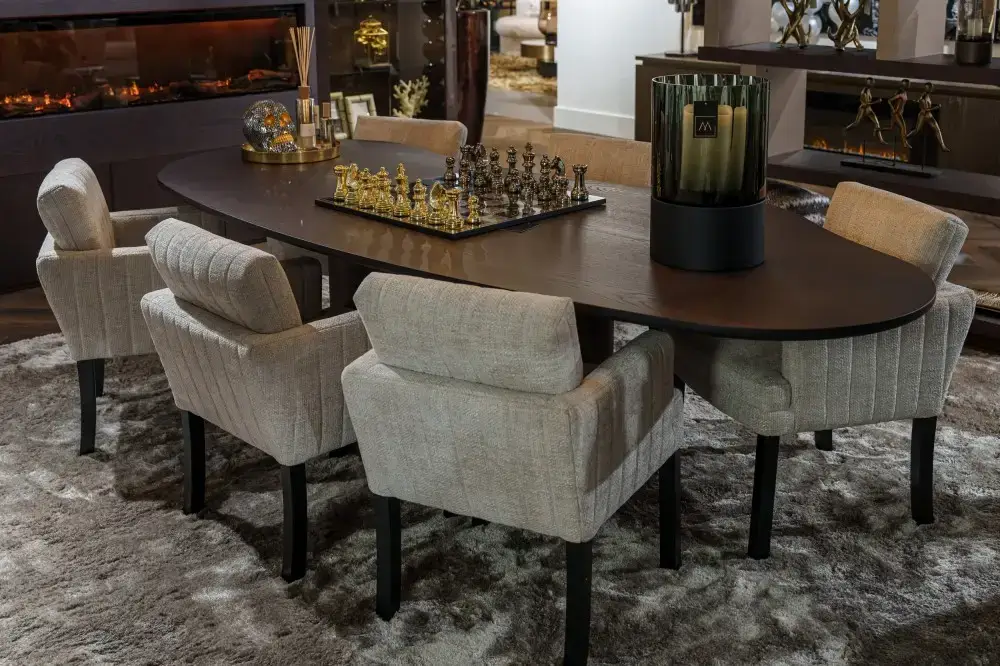 De Eettafel Buffalo straalt organische gratie uit, met vloeiende lijnen die zorgen voor een harmonieuze symbiose tussen natuur en design. De tafel lijkt bijna te zijn gegroeid, zijn vorm geïnspireerd door de subtiele rondingen en wendingen die in de natuur te vinden zijn. Dit is niet zomaar een meubelstuk; het is een eerbetoon aan de schoonheid van organische vormen, gevangen in duurzaamheid en vakmanschap.