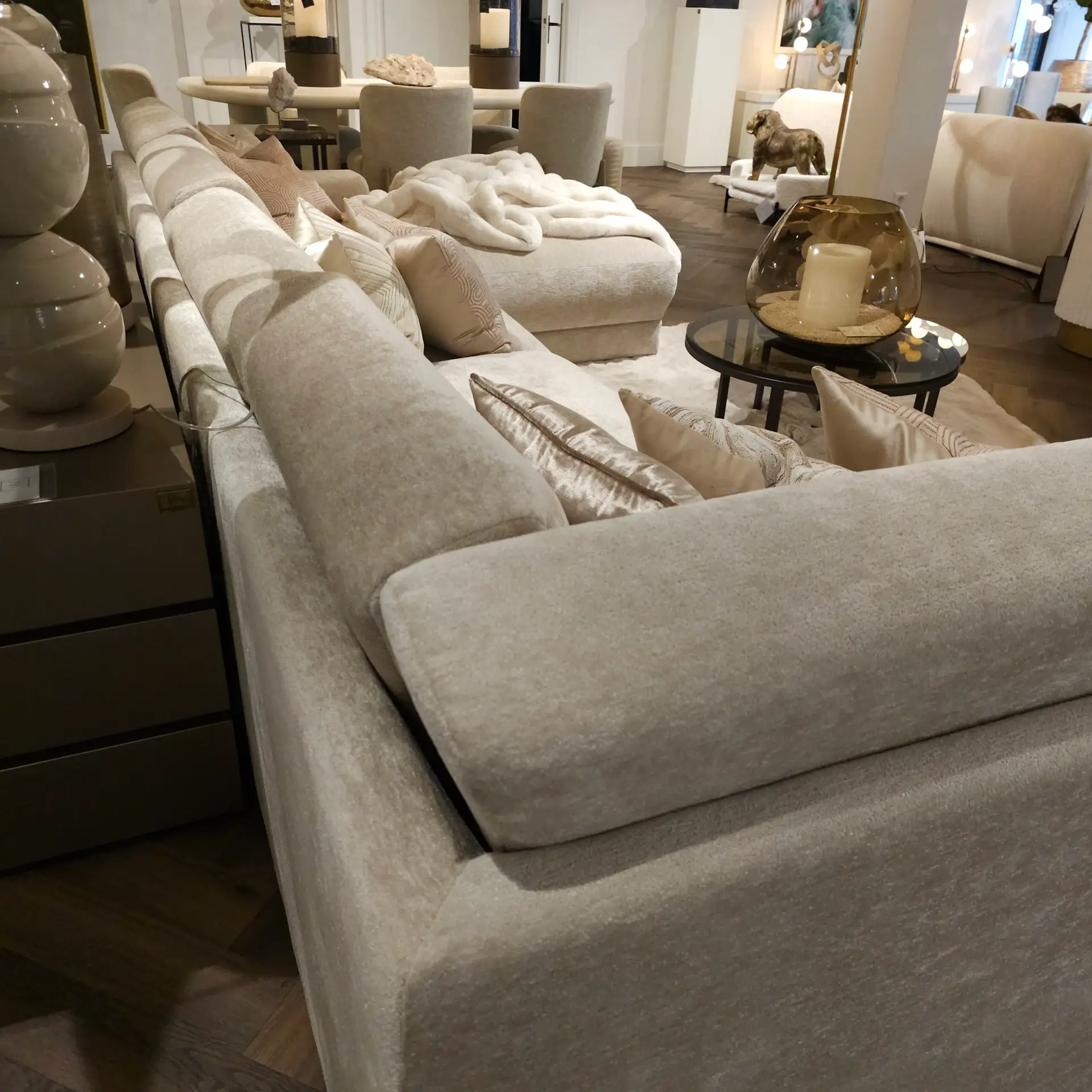 De vaste zitkussens bieden een stevige, duurzame ondersteuning dankzij de hoogwaardige koudschuimvulling, terwijl de losse rugkussens zorgen voor een ontspannen en uitnodigende zit. De stof heeft een subtiele glans en rijke textuur, waardoor de Verona in elk interieur een exclusieve sfeer creëert.