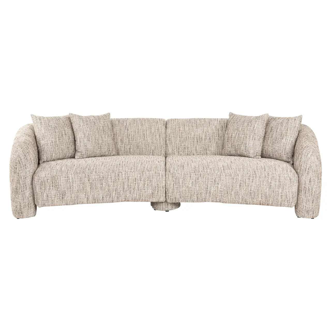 De bank Milania in trendy nature combineert modern design met comfort in een uniek, afgerond ontwerp. De zachte, geweven bekleding in de subtiele trendy nature-kleur geeft de bank een verfijnde en uitnodigende uitstraling. De ruime zitting biedt voldoende ruimte voor ontspanning, terwijl de afgeronde vormen en stevige, speelse poten de bank een opvallend karakter geven. Milania is perfect voor wie op zoek is naar een statementstuk dat moeiteloos past in zowel moderne als minimalistische interieurs. Deze bank brengt een vleugje eigentijdse luxe in elke ruimte, met een harmonieuze mix van stijl en functionaliteit.