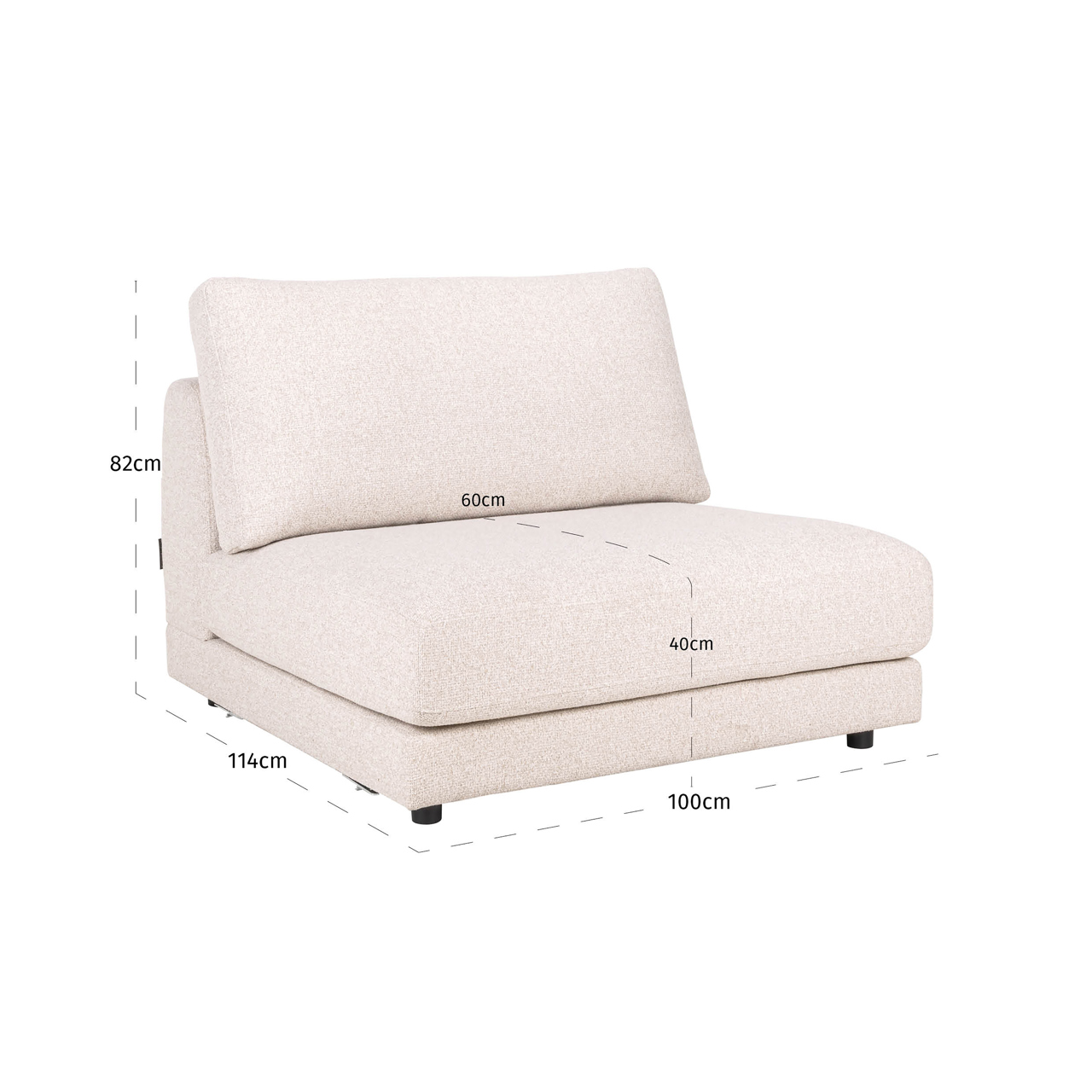 Een centraal element binnen de modulaire opstelling dat rust en flexibiliteit combineert. De doorlopende stoffering van rug en zijkant onderstreept het samenhangende karakter van de Trinity. Zonder armleuningen behoudt dit module een open uitstraling en is het eenvoudig te integreren in diverse configuraties.