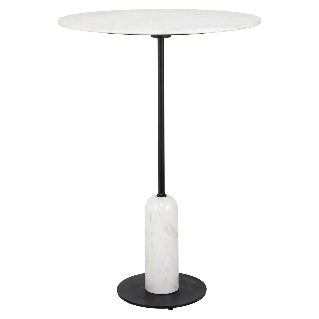De Jagger bartafel, met een diameter van 75 cm, heeft een strak wit marmeren tafelblad dat prachtig contrasteert met de robuuste ijzeren voet. De zwarte accenten op de voet geven de tafel een hedendaagse uitstraling. Dankzij zijn compacte formaat is deze bartafel ideaal voor kleinere ruimtes, maar biedt toch voldoende oppervlak voor drankjes en hapjes. Het gebruik van marmer en ijzer zorgt niet alleen voor een stijlvol design, maar ook voor stabiliteit en duurzaamheid.