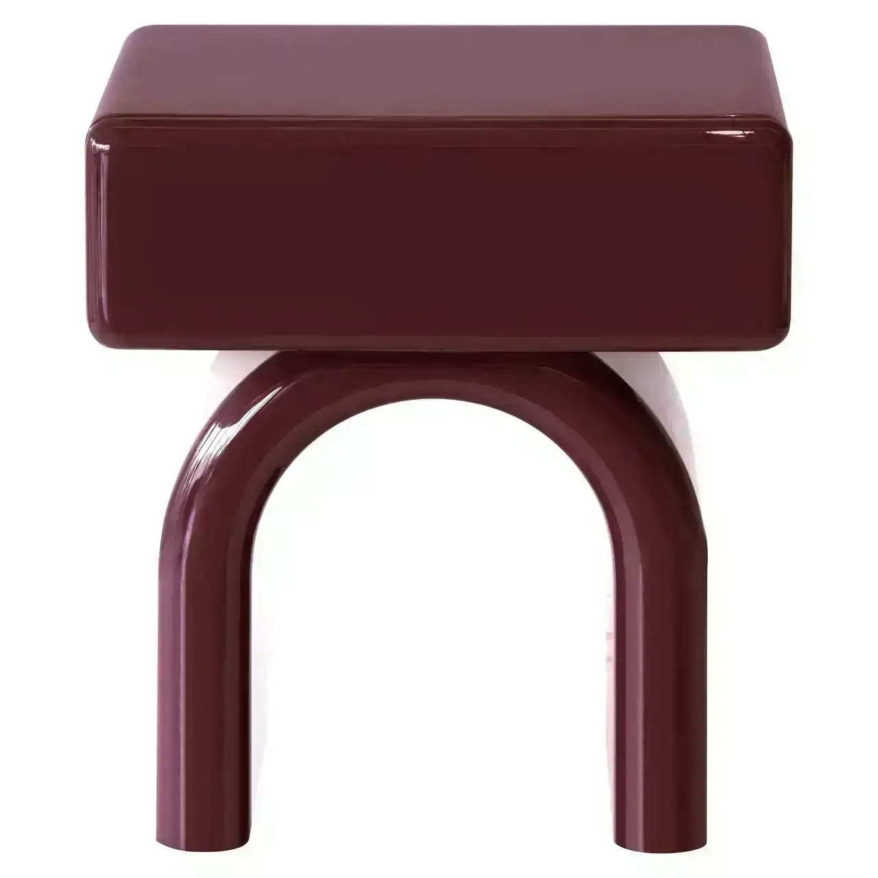 Deze bijzettafel heeft een compacte vorm met rechte lijnen en een gesloten uitstraling. Het ontwerp toont een duidelijk volume met een geïntegreerd ladefront, waardoor het geheel rustig oogt. De kleurindruk is diep en warm, wat de tafel geschikt maakt als subtiel accent naast een zitmeubel. Door de evenwichtige verhoudingen past dit object goed binnen diverse interieurstijlen.