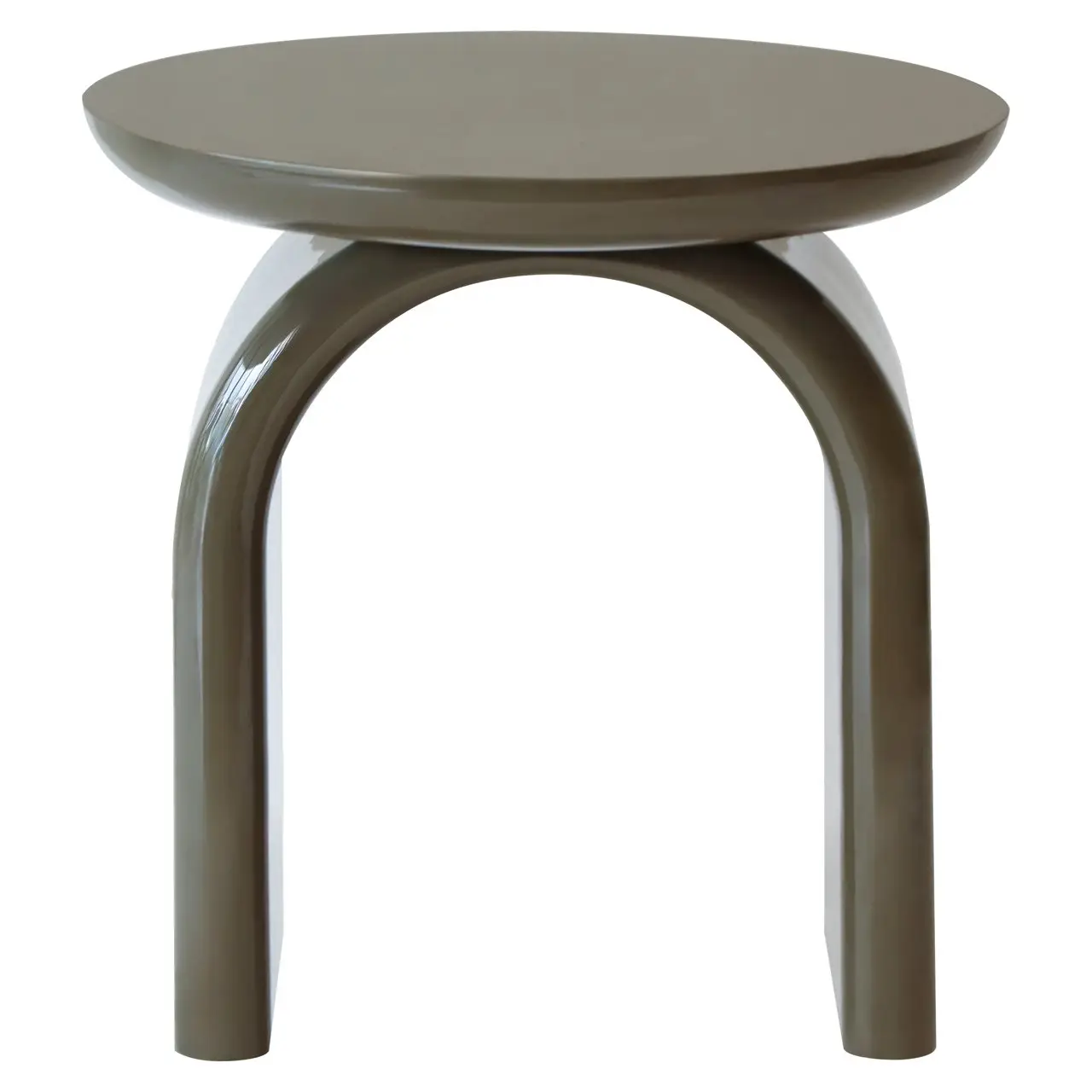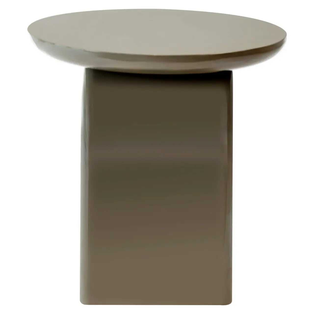Deze bijzettafel heeft een compacte vorm met afgeronde lijnen en een gesloten uitstraling. De kleurindruk is zacht en natuurlijk, wat zorgt voor een rustige aanwezigheid in het interieur. Door het eenvoudige silhouet past de tafel goed naast een zitmeubel of in een hoek van de ruimte. Het ontwerp oogt evenwichtig en ingetogen.