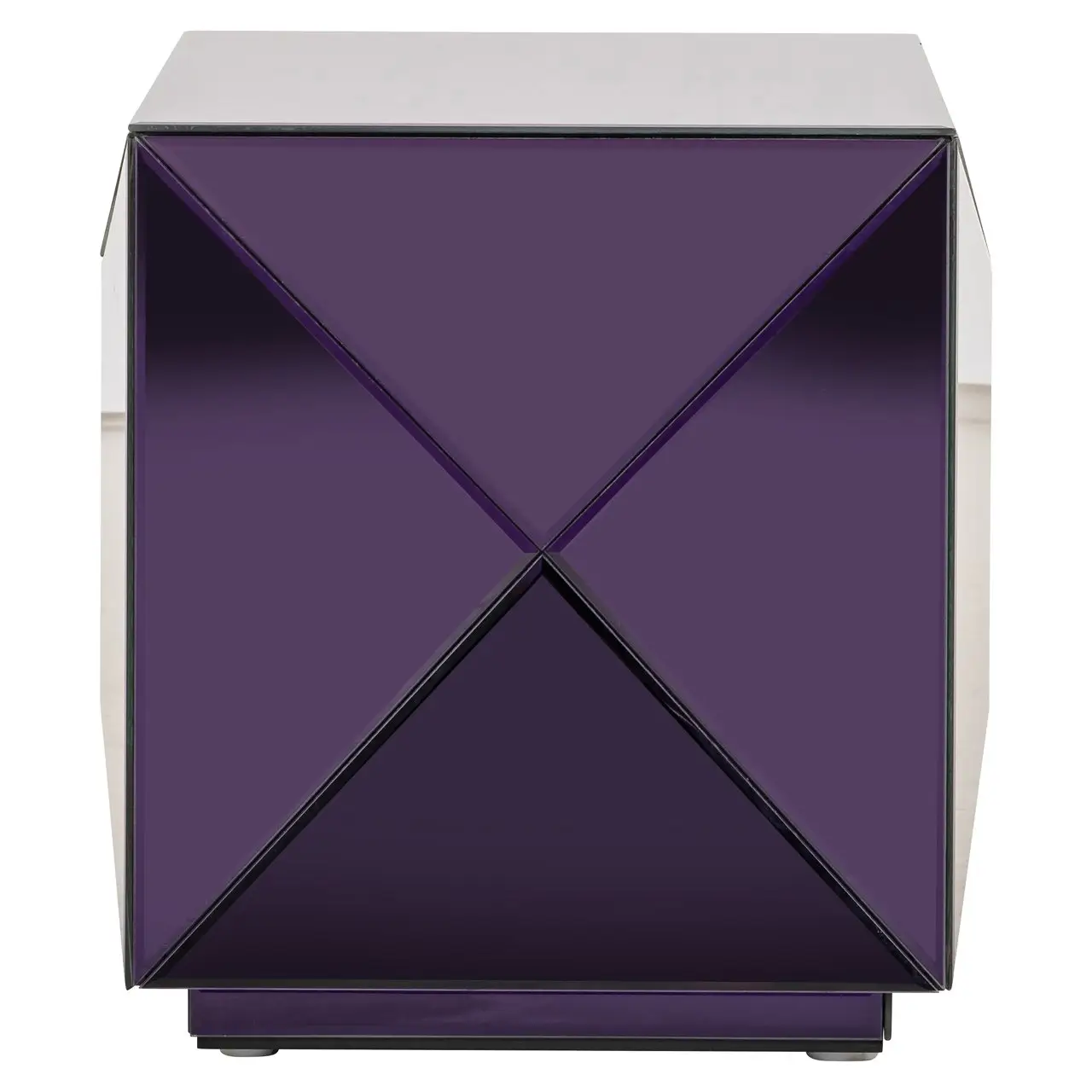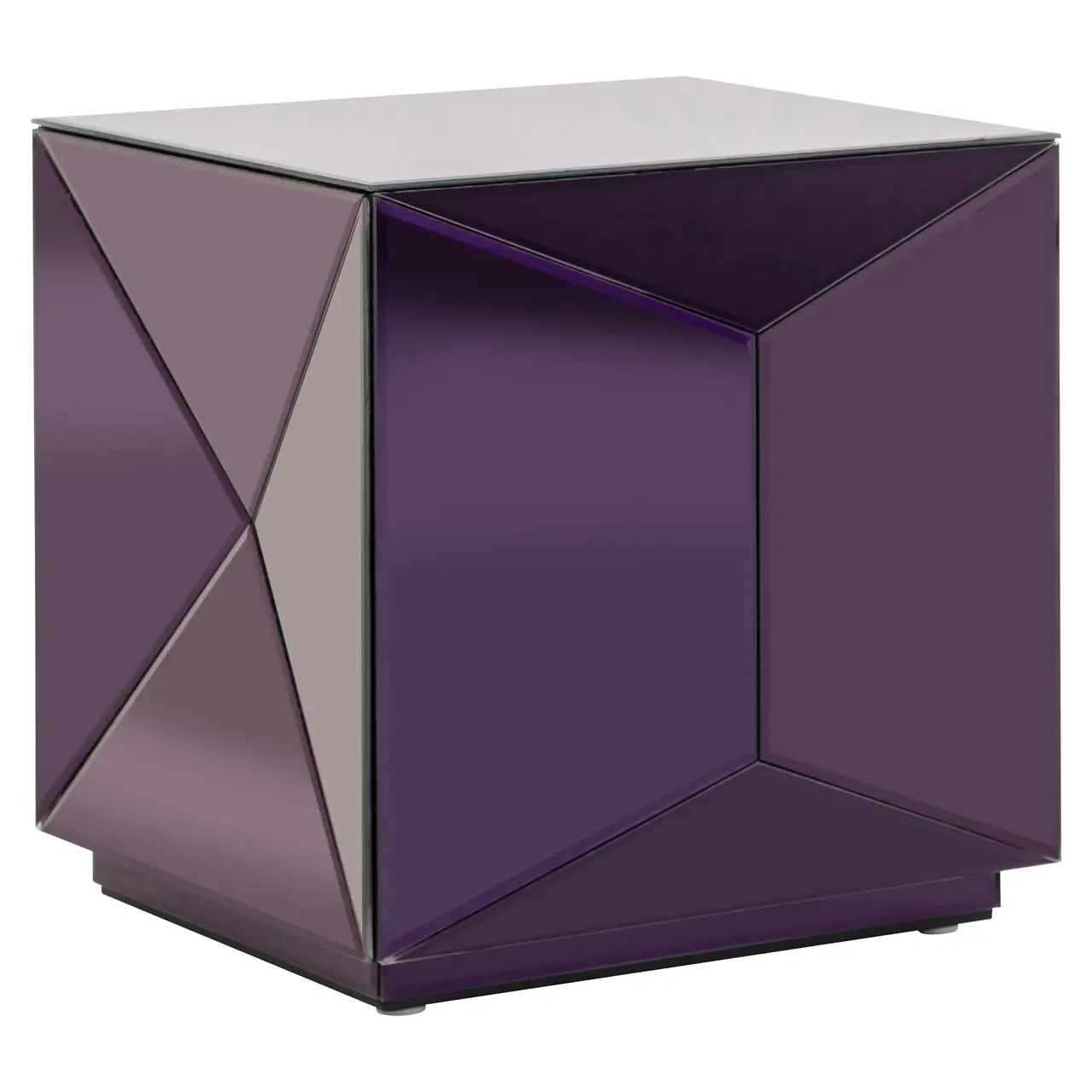 De Shifra bijzettafel met spiegel is een modern en stijlvol meubelstuk, uitgevoerd in een opvallende paarse kleur en vervaardigd uit spiegelglas en MDF. Het geometrische ontwerp met gefacetteerde vlakken zorgt voor een intrigerend visueel effect, waarbij de paarse spiegelpanelen het licht op een unieke manier weerkaatsen. De stevige MDF-constructie biedt duurzaamheid en stabiliteit. Deze spiegel is zowel functioneel als decoratief en voegt een speelse en eigentijdse touch toe aan elk interieur, perfect voor wie op zoek is naar een uniek accent in hun woonruimte.