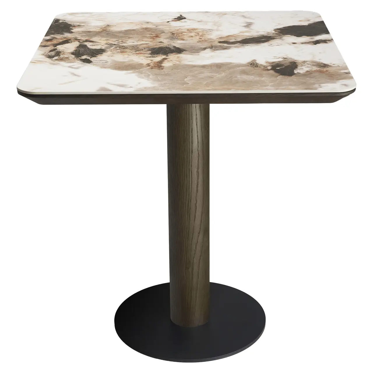 Een compacte bistrotafel met een verfijnde uitstraling. Binnen de Langford collectie zorgt de combinatie van een glanzend ceramic travertine blad en een zorgvuldig vormgegeven onderstel voor een evenwichtige balans tussen luxe en rust. Ideaal voor intieme zitplekken of kleinere ruimtes waar sfeer en functionaliteit samenkomen. Een subtiel statement met een hoogwaardige afwerking.