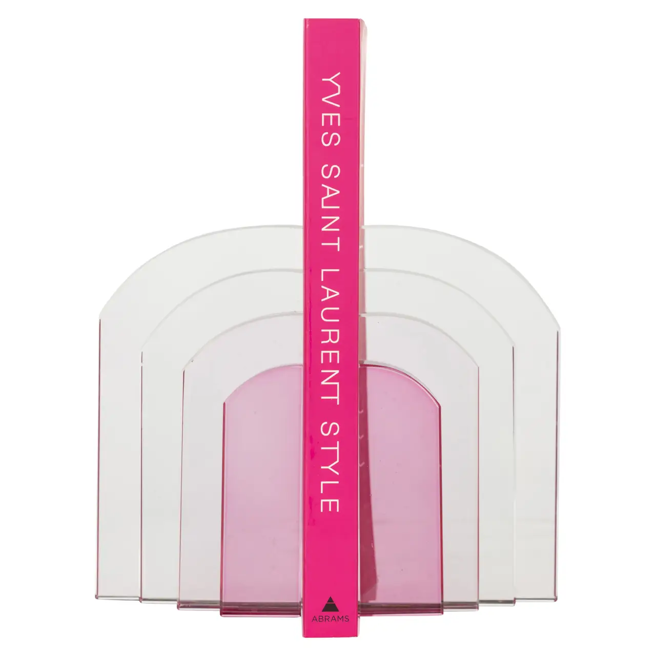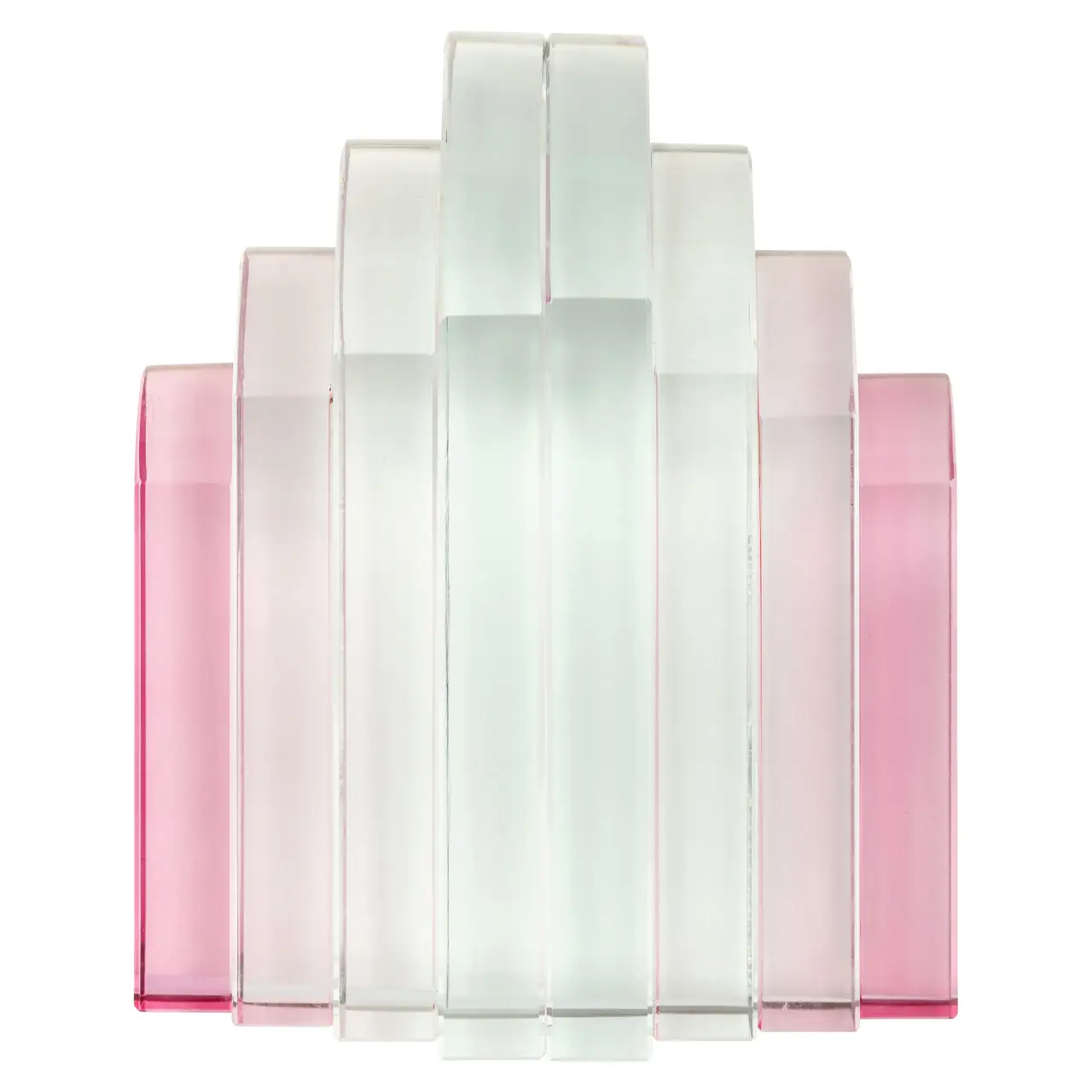 Boekenstandaard Alissia is een elegante en functionele toevoeging aan elke boekenplank of bureau. Vervaardigd uit helder glas, wordt het ontwerp versterkt door de subtiel ingebrachte roze details, die een zachte, vrouwelijke touch toevoegen aan het geheel.