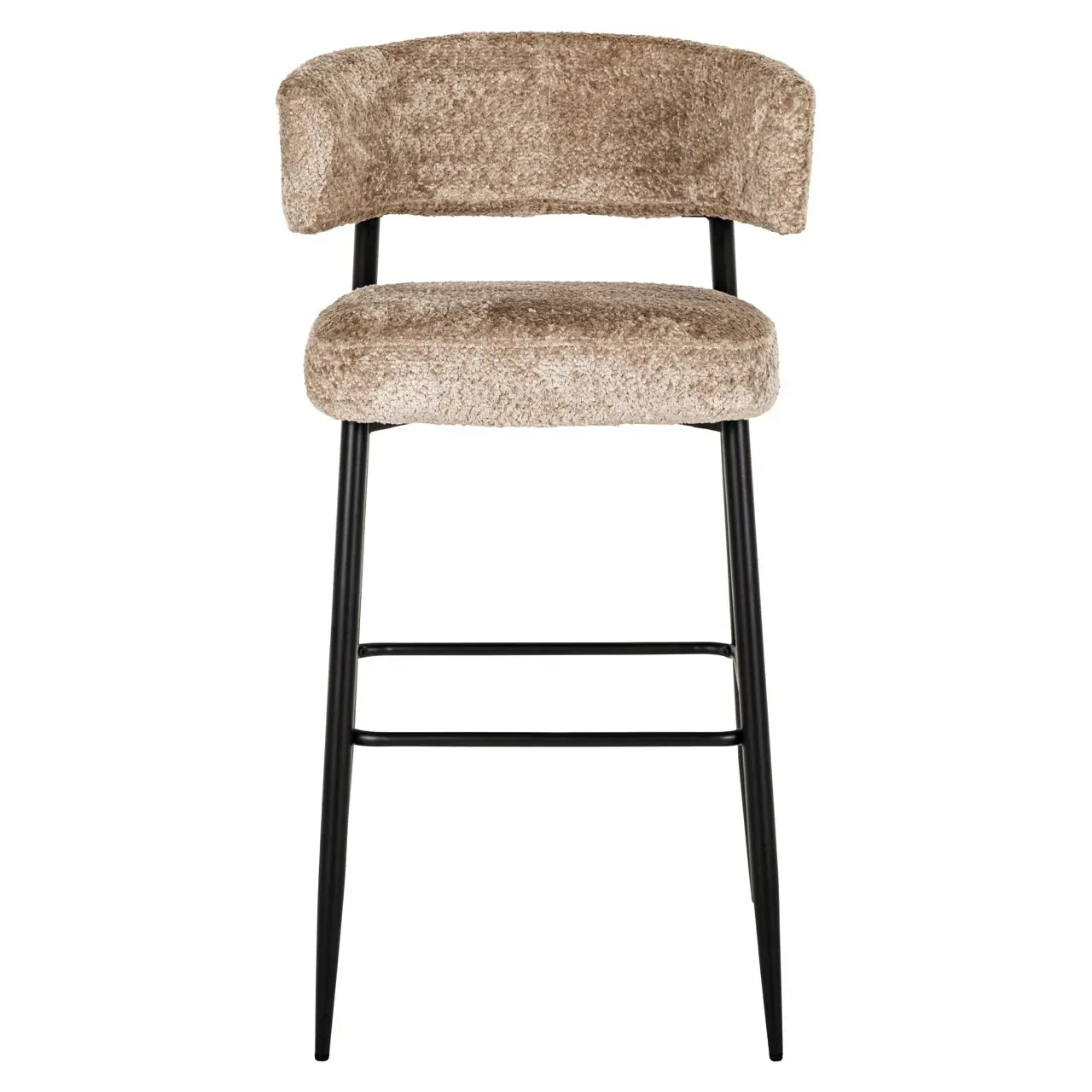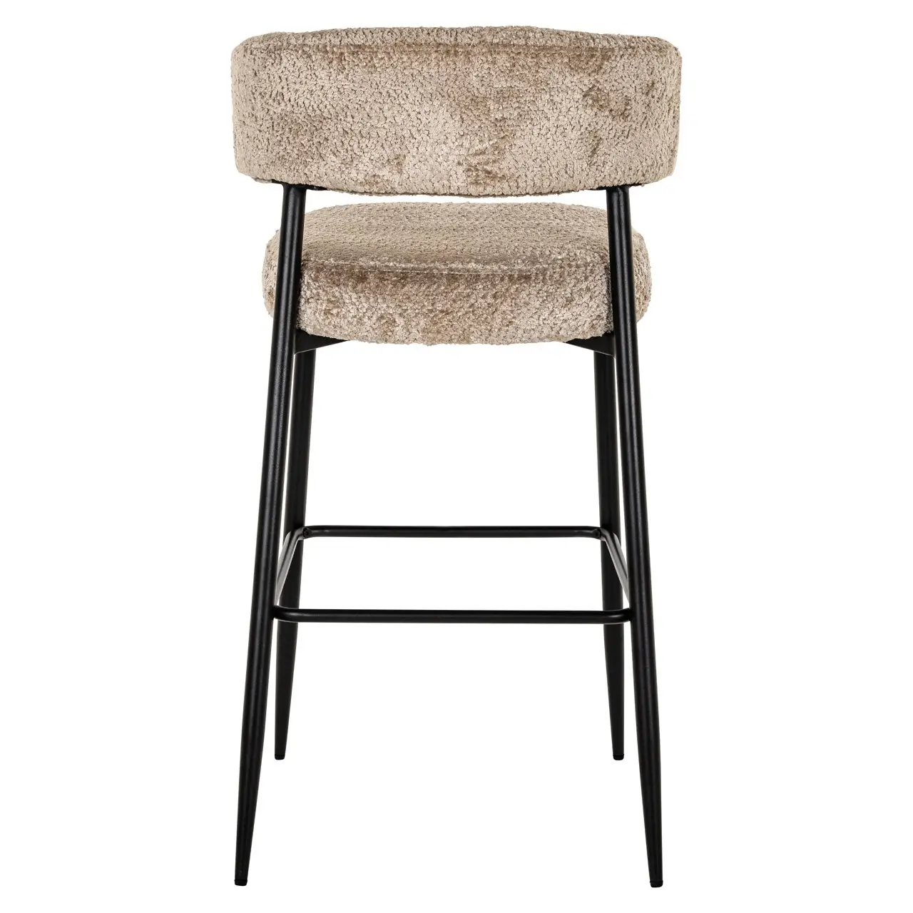 De counterstoel Rochelle, verkrijgbaar in trendy nature en sheep nature, combineert stijl en comfort op een verfijnde manier. De zachte bekleding, die verkrijgbaar is in twee natuurlijke tinten, zorgt voor een warme uitstraling en een aangename zitervaring. De ronde rugleuning biedt extra steun, terwijl de slanke zwarte metalen poten een modern en stevig accent toevoegen. De geïntegreerde voetsteun zorgt voor extra comfort bij langere zitmomenten. Rochelle wordt geleverd als set van twee en is ideaal voor gebruik aan een keukeneiland of bar. Deze stoelen voegen een eigentijds en luxe element toe aan elk interieur.