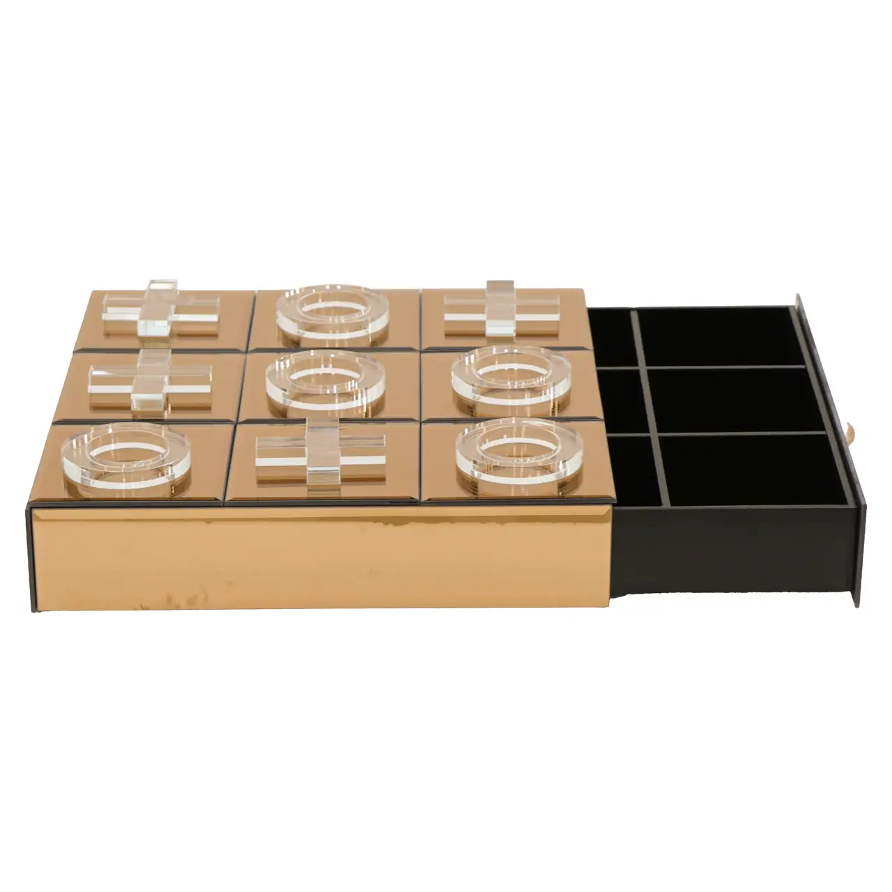 Een decoratief spelobject dat functionaliteit en styling combineert. Het vormt een interessant detail op een salontafel of console. Tegelijk nodigt het uit tot een ontspannen moment samen. Het ontwerp laat zich moeiteloos combineren met verschillende interieurstijlen en zorgt voor een rustige balans in de ruimte.