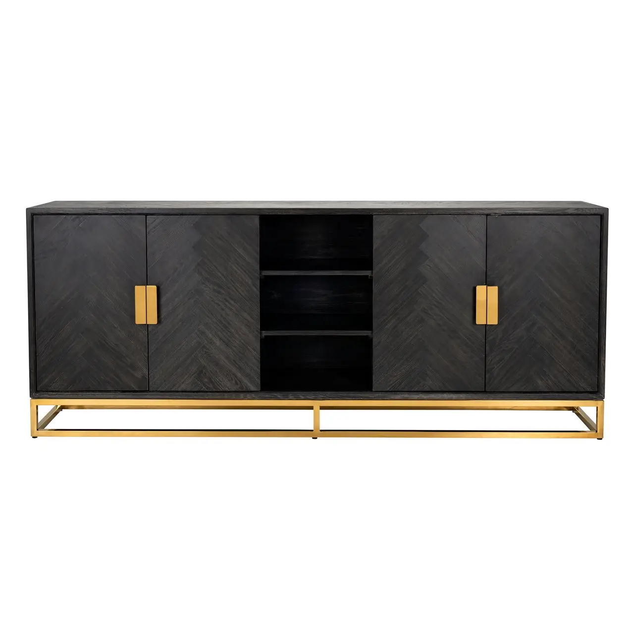 Dressoir Blackbone goud 4-deuren is gemaakt van eiken en RVS. Het zwarte dressoir uit de Blackbone collectie geeft je interieur een elegante, maar toch ook stoere touch. Ook verkrijgbaar met zilver.