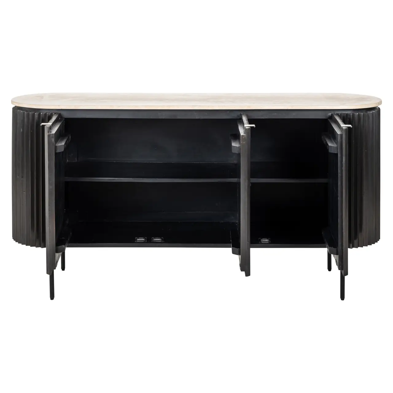 Het Hampton dressoir is een stijlvol en functioneel meubelstuk dat perfect past in uw woonkamer of eetkamer. Het dressoir heeft een strak design met drie deuren en een prachtig travertin blad dat een natuurlijke houtnerf heeft. Het gestroomlijnde ontwerp en de verfijnde afwerking maken het dressoir geschikt voor verschillende interieurstijlen. Het biedt voldoende opbergruimte voor uw servies, glazen, boeken en andere persoonlijke spullen. Het stevige frame en het duurzame materiaal zorgen ervoor dat het Hampton dressoir een praktische en mooie aanwinst is voor uw woonruimte. Voeg een vleugje stijl en functionaliteit toe aan uw interieur met deze prachtige Hampton dressoir.