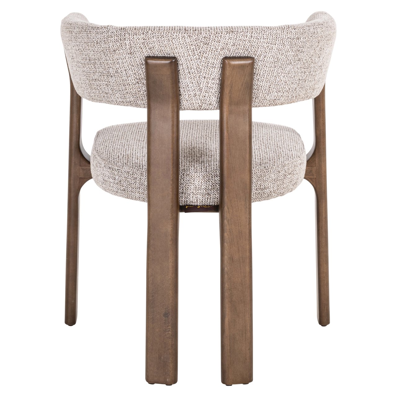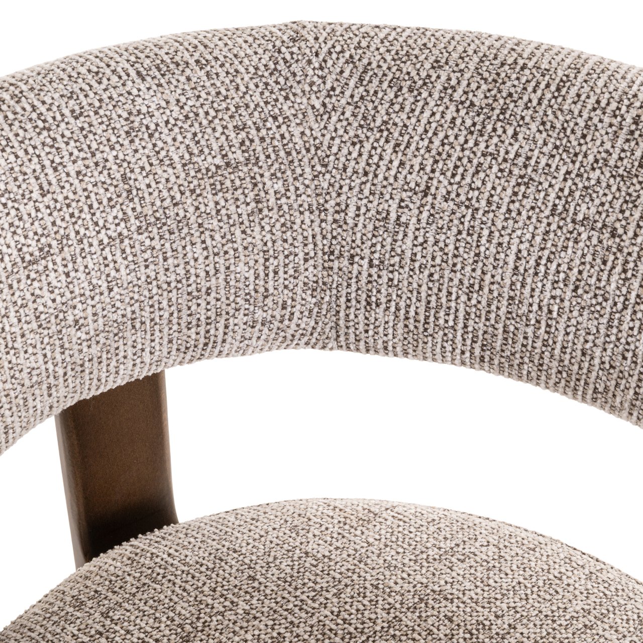 Eetkamerstoel Contigo in mocca fancy heeft hetzelfde beukenhouten frame en sculpturale vorm. Een verfijnde eetkamerstoel met speelse rondingen en rijk contrast.