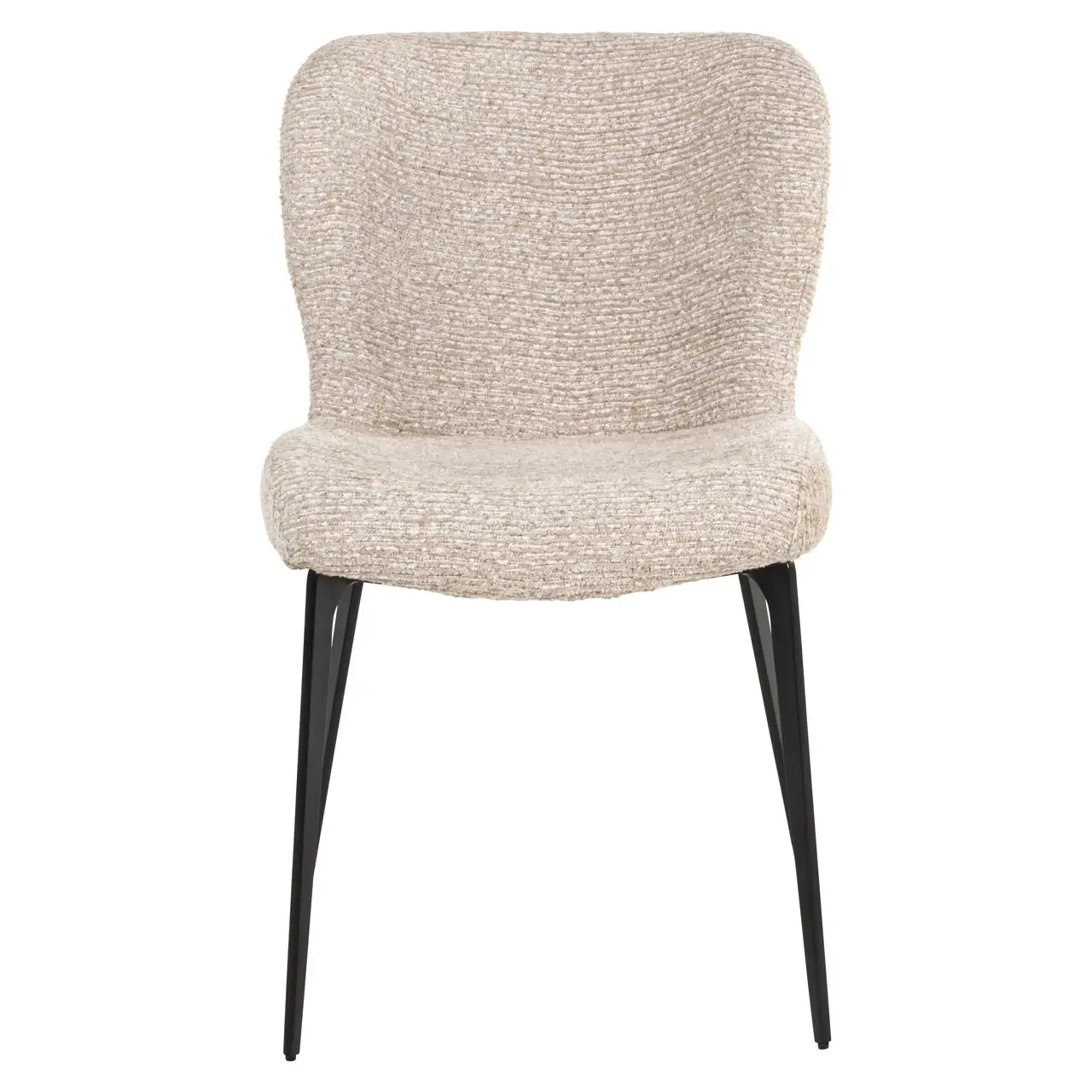 Eetkamerstoel Sergio heeft een minimalistisch frame met een gebogen rug en zitting. Bekleed met natural linear-stof voor een zachte, gestructureerde uitstraling.