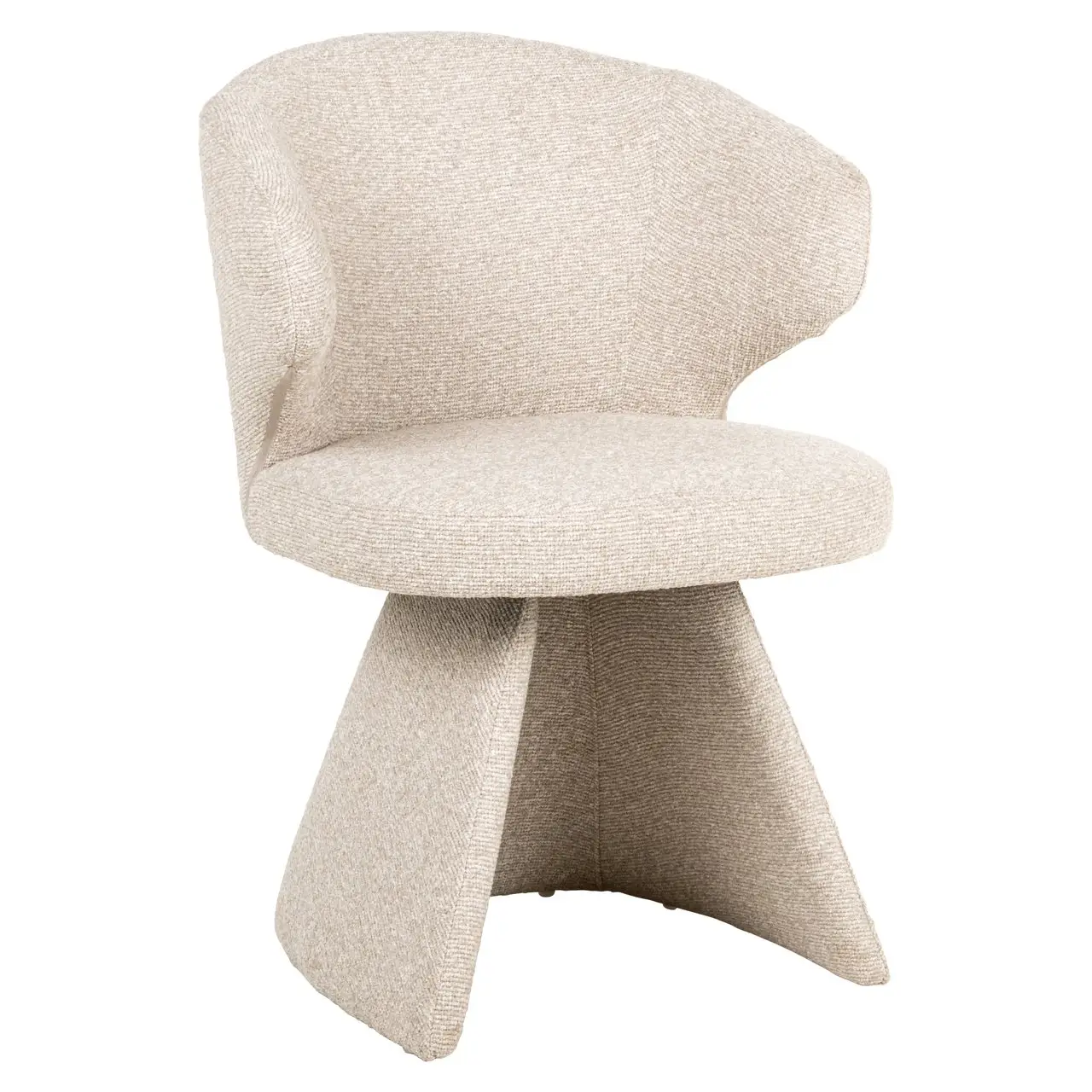 Eetkamerstoel Zenith is volledig bekleed met biscotti-stof en heeft zachte rondingen en een comfortabele zitting. Perfect te combineren met de Gatsbi barstoel in dezelfde stof.