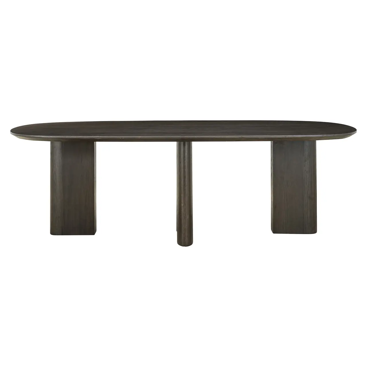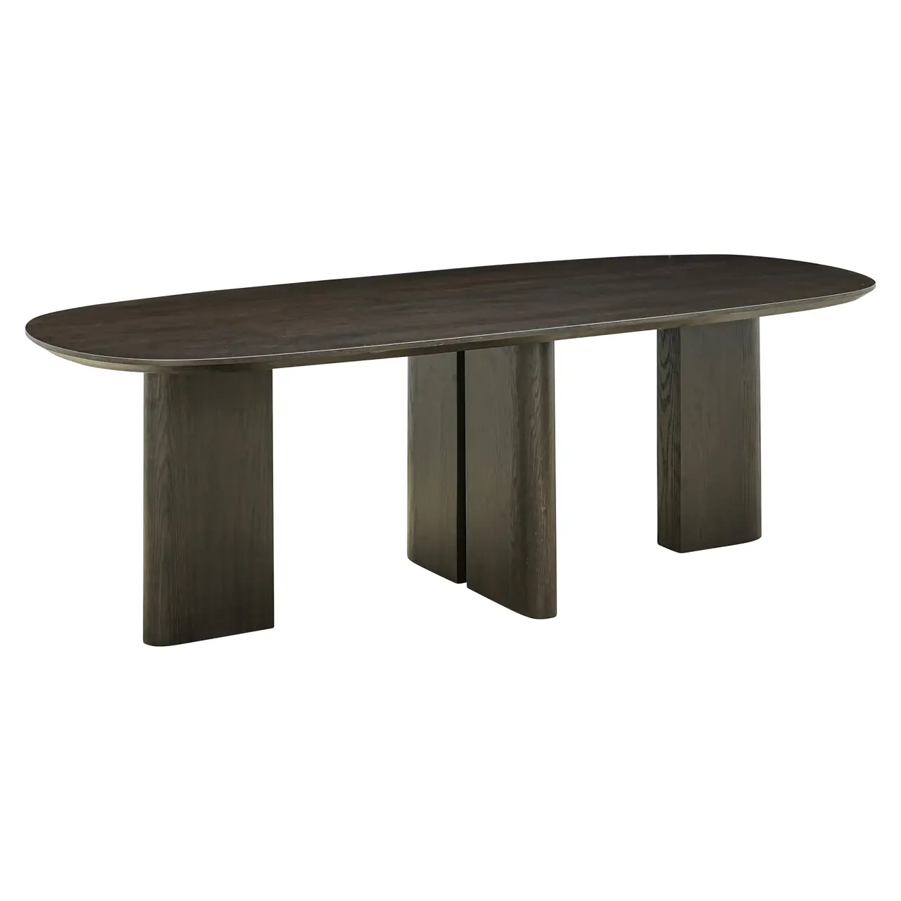 De Durban eettafel in de kleur bruin is vervaardigd uit eikenfineer, eikenhout en multiplex, wat zorgt voor een stevige en duurzame constructie. De tafel heeft een elegant ovaal tafelblad dat een tijdloze en moderne uitstraling biedt. De warme bruine kleur benadrukt de natuurlijke houtnerf, waardoor de tafel een verfijnde en stijlvolle toevoeging is aan elke eetruimte. De Durban eettafel is beschikbaar in drie maten: 220 cm, 250 cm en 300 cm, waardoor hij geschikt is voor verschillende eetruimtes en gezelschappen. Deze tafel combineert functionaliteit met een strak en eigentijds design.