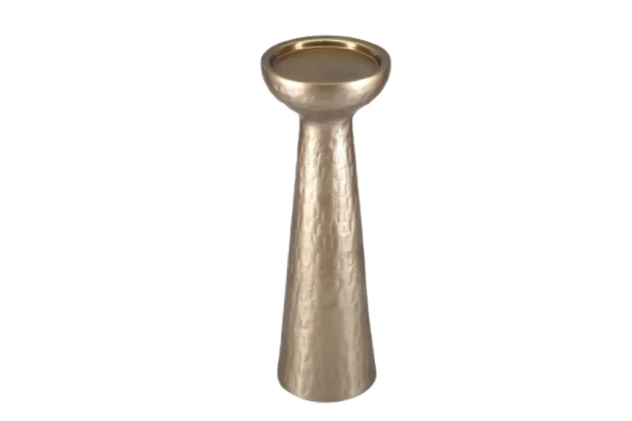 Kandelaar Juana large heeft een verfijnde vorm met zachte rondingen en een beige afwerking. Een tijdloos stuk dat past op elke tafel of schouw.