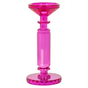 Deze verfijnde kandelaar is vervaardigd uit lichtpaars kristal dat bij elke lichtinval op betoverende wijze fonkelt. Het zachte paarse tintje van de Maysa kandelaar zorgt voor een rustgevende en elegante sfeer in elke ruimte. Wanneer er een kaars in brandt, wordt het licht op een prachtige manier weerkaatst door het kristal, waardoor er een sfeervol lichtspel ontstaat.