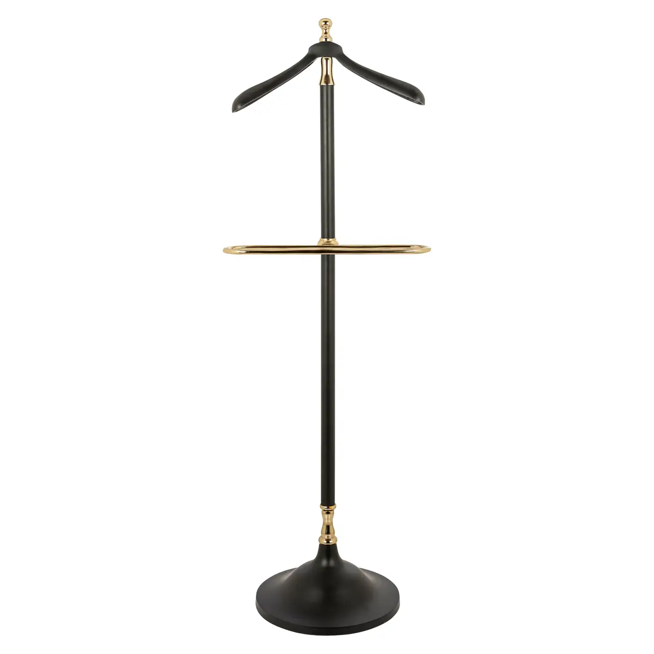Het Kledingrek Balley combineert functionaliteit met verfijnde esthetiek, perfect voor wie zijn of haar kleding met stijl wil presenteren. Dit kledingrek is voorzien van een elegante staander en een stevige voet, die stabiliteit garandeert. Het bovenste gedeelte is ontworpen met een kledinghanger die de perfecte ondersteuning biedt voor kostuums, jassen of andere kledingstukken. De subtiele goudkleurige accenten voegen een vleugje luxe toe, terwijl het slanke ontwerp zorgt voor een moderne uitstraling. Ideaal voor gebruik in de slaapkamer, kleedkamer of hal om je favoriete kledingstukken netjes en toegankelijk te houden.