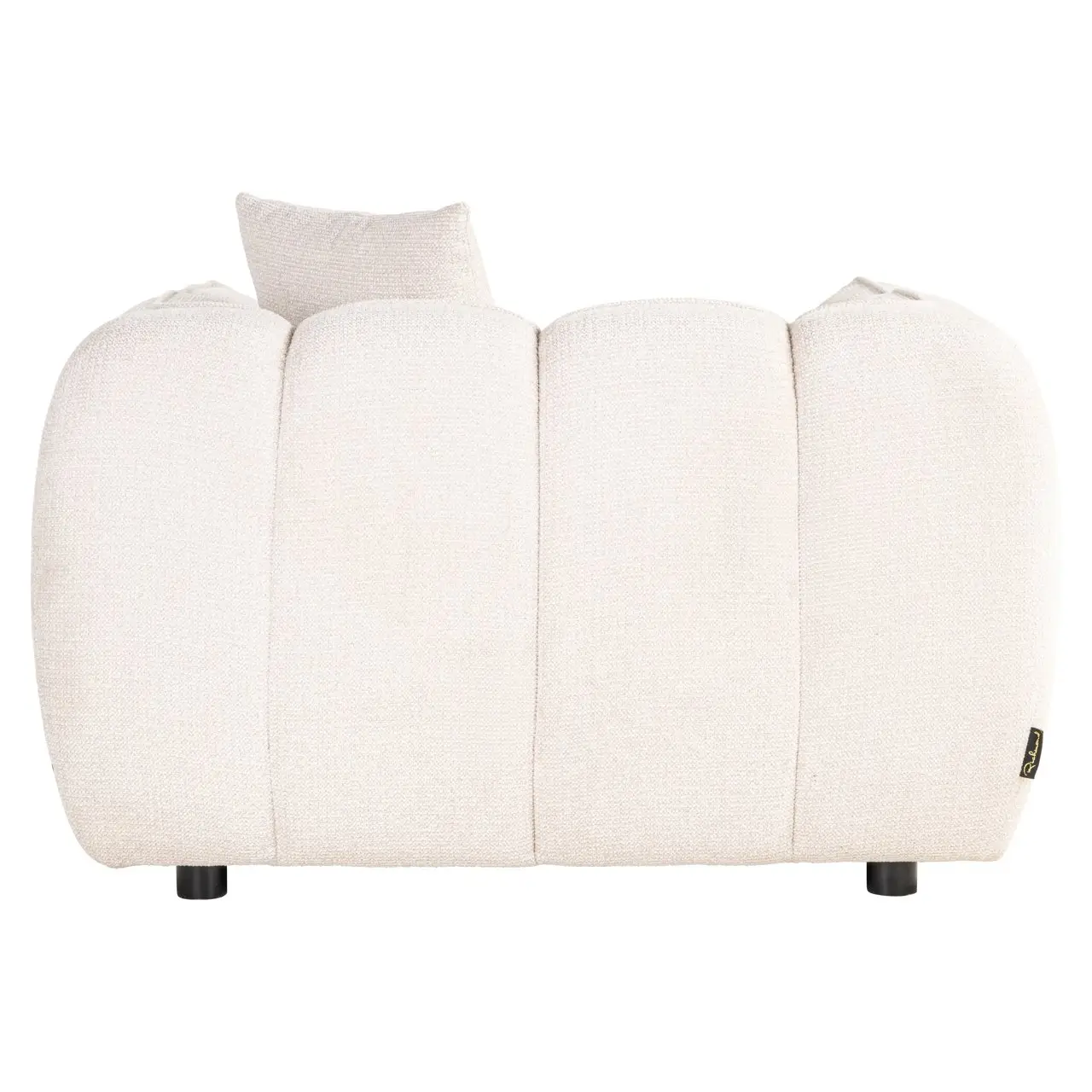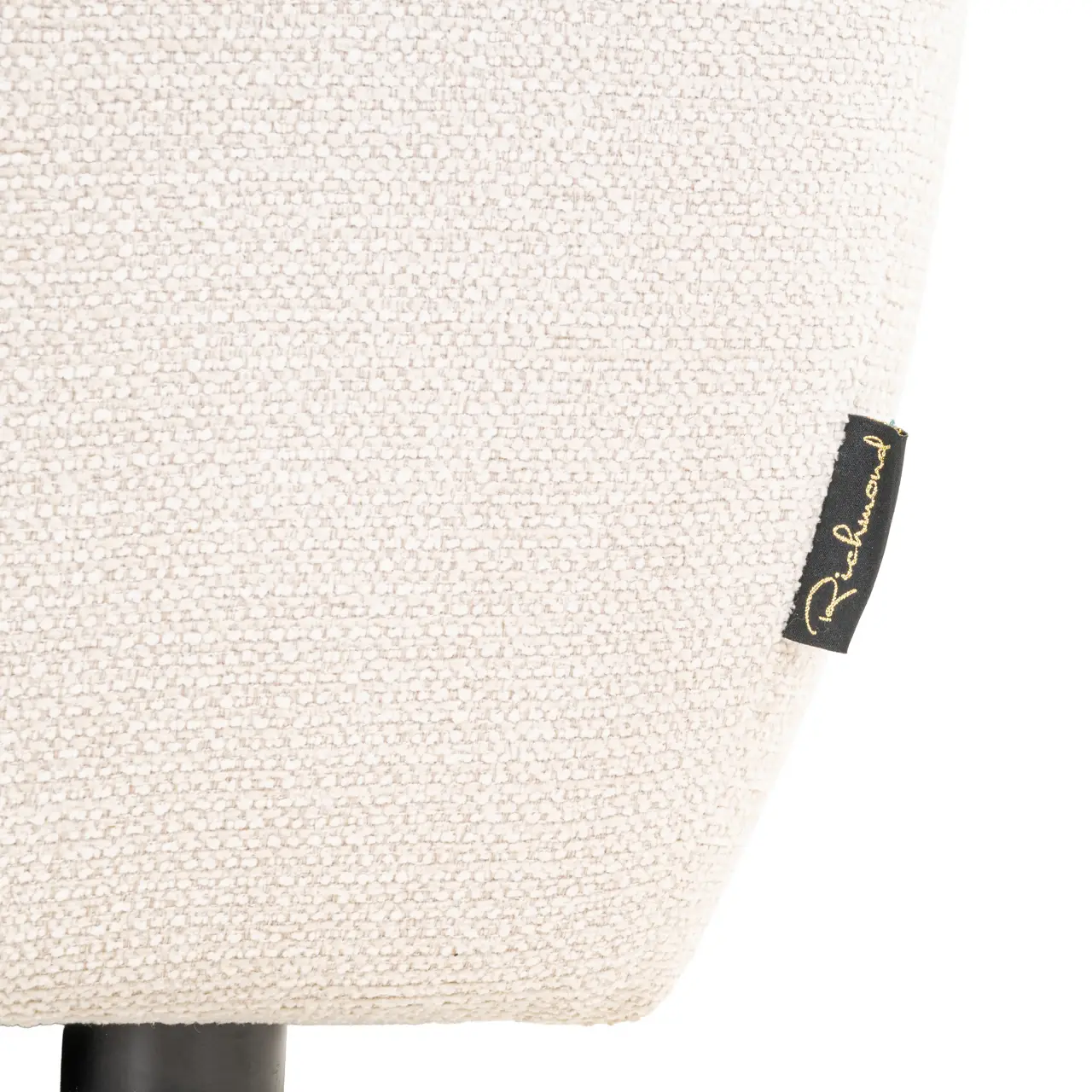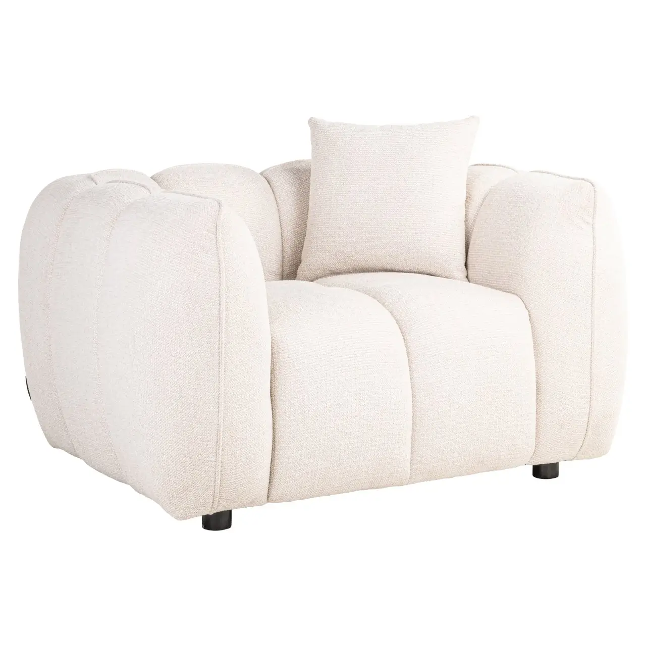 Fauteuil Jezebel straalt luxe uit met zijn ronde vorm en weelderige cream fancy-stof. Wordt geleverd met één los kussen voor extra comfort.