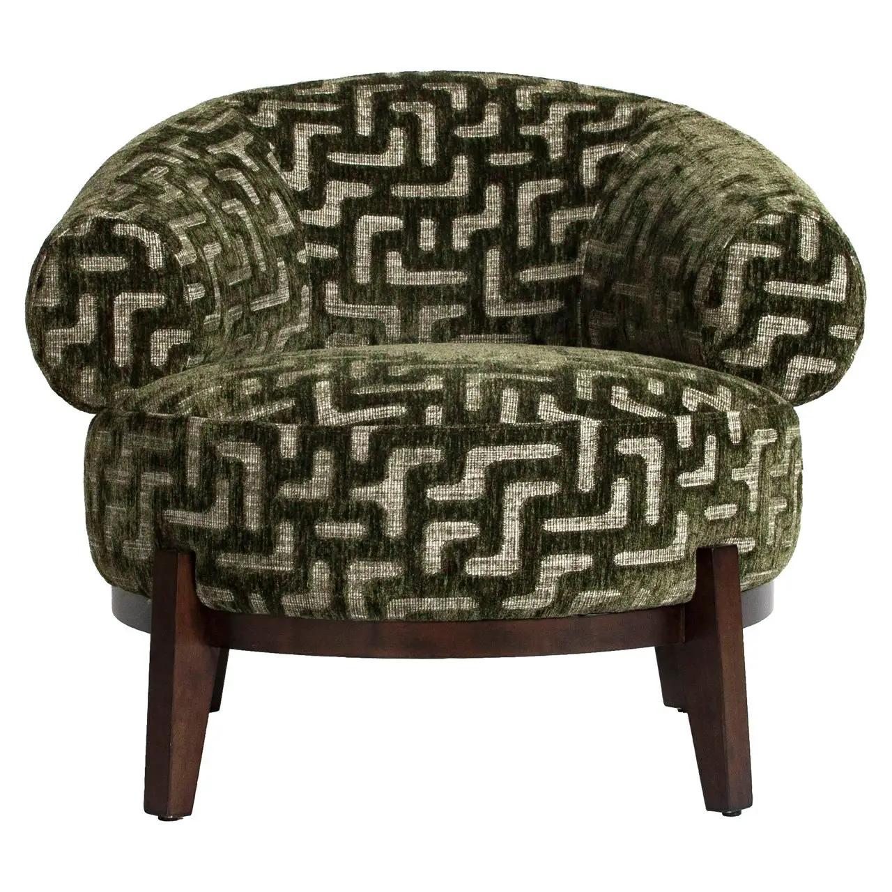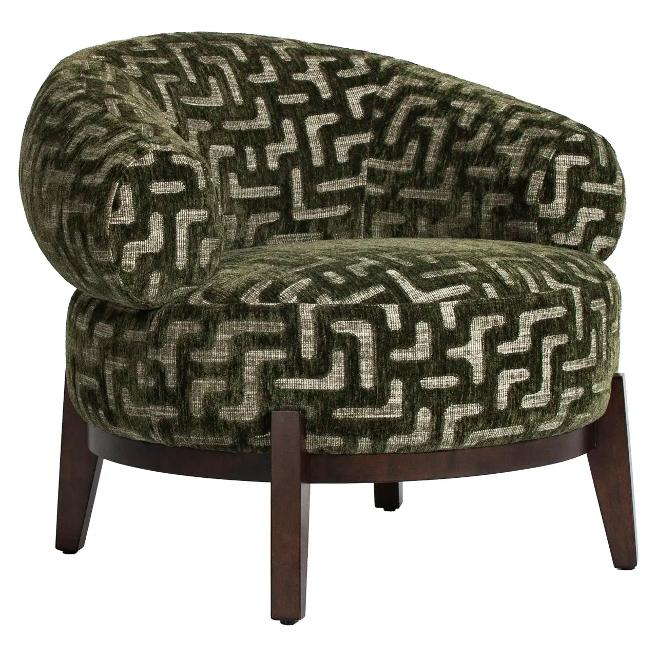 Een loungestoel met een ontspannen en uitnodigend profiel. Het labyrinthpatroon geeft het ontwerp een speels accent, terwijl de moss tint zorgt voor een natuurlijke uitstraling. De royale vorm ondersteunt een comfortabele zit en maakt het model geschikt als zelfstandig statement of als onderdeel van een grotere setting.