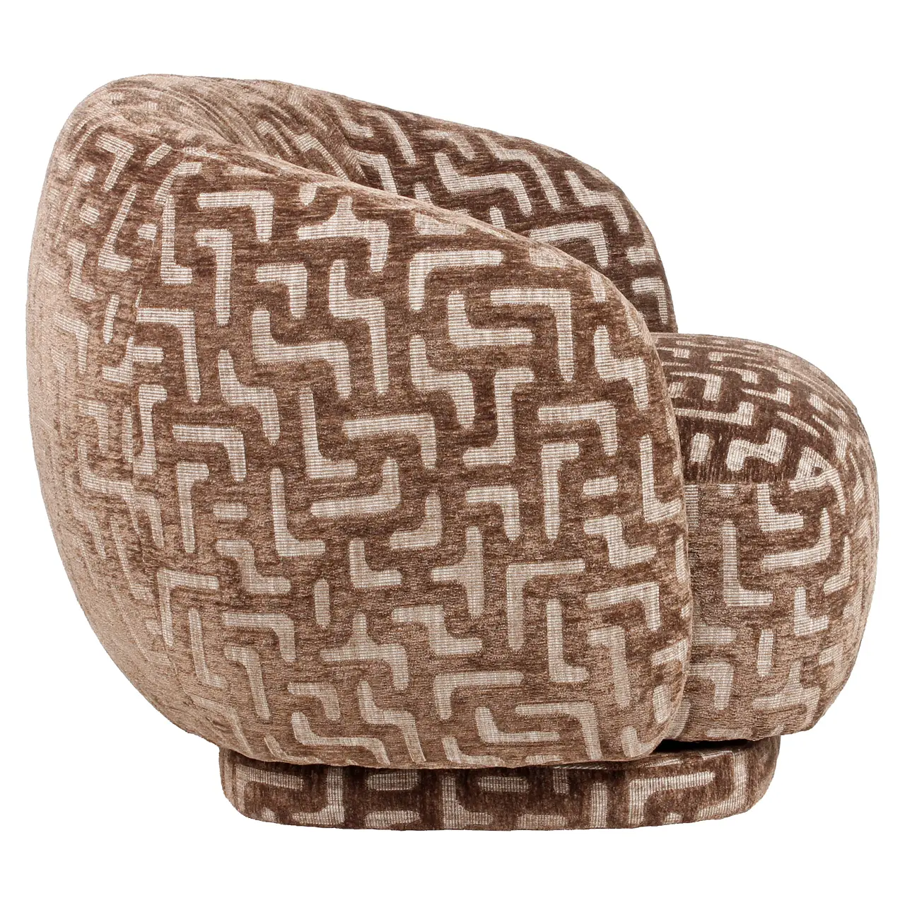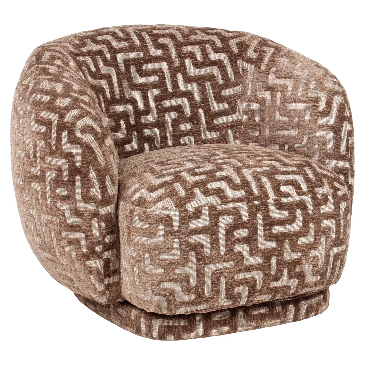 Een loungestoel met een krachtig en eigentijds karakter. Het brown labyrinth dessin voegt diepte en visuele dynamiek toe aan het ontwerp. De comfortabele zit en uitgebalanceerde vorm maken het model geschikt voor diverse woon- en projectomgevingen. Een opvallend accent met verfijnde uitstraling.