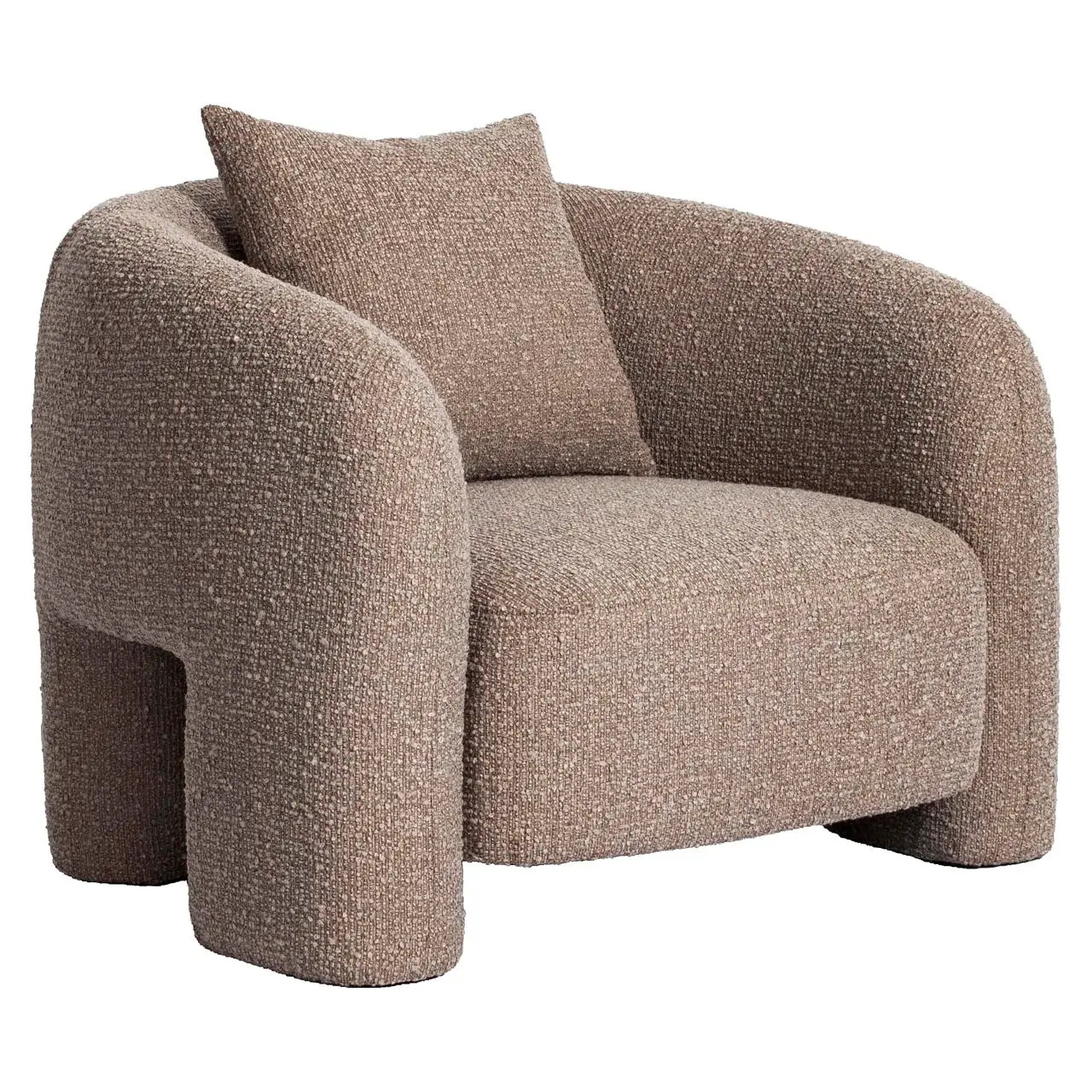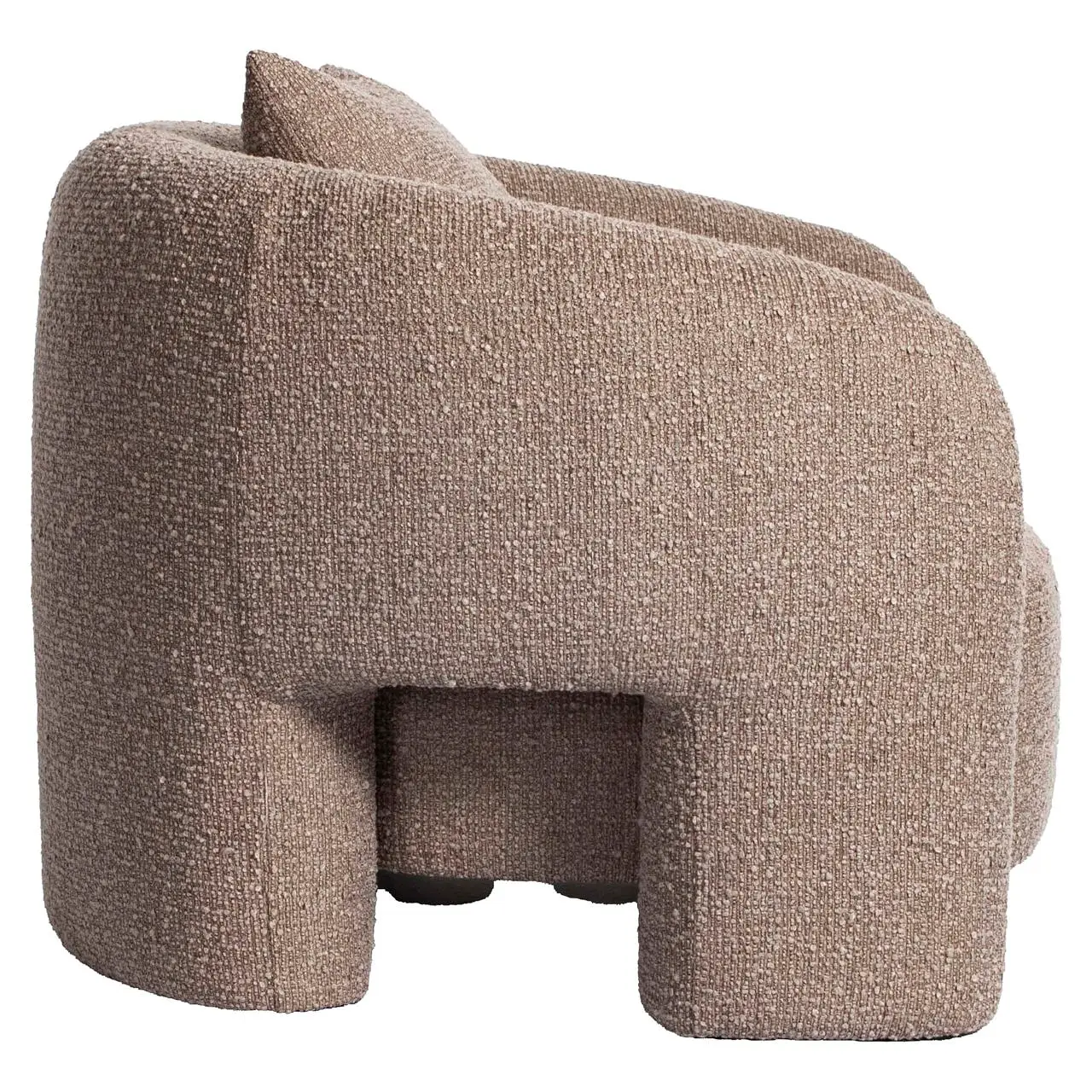 Een loungestoel met een warme en uitgesproken uitstraling. De mocca chunky bekleding geeft het ontwerp rijke textuur en karakter. De royale vorm ondersteunt comfort en maakt het model geschikt als opvallend element binnen uiteenlopende interieurstijlen.