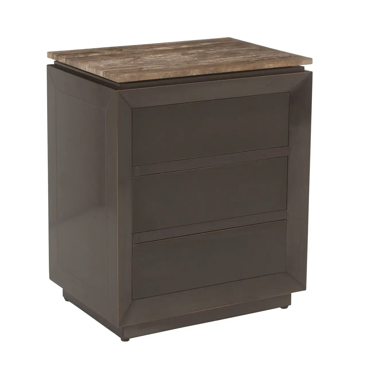 Nachttafel Russo in bruin heeft drie lades en biedt zowel opbergruimte als elegantie.