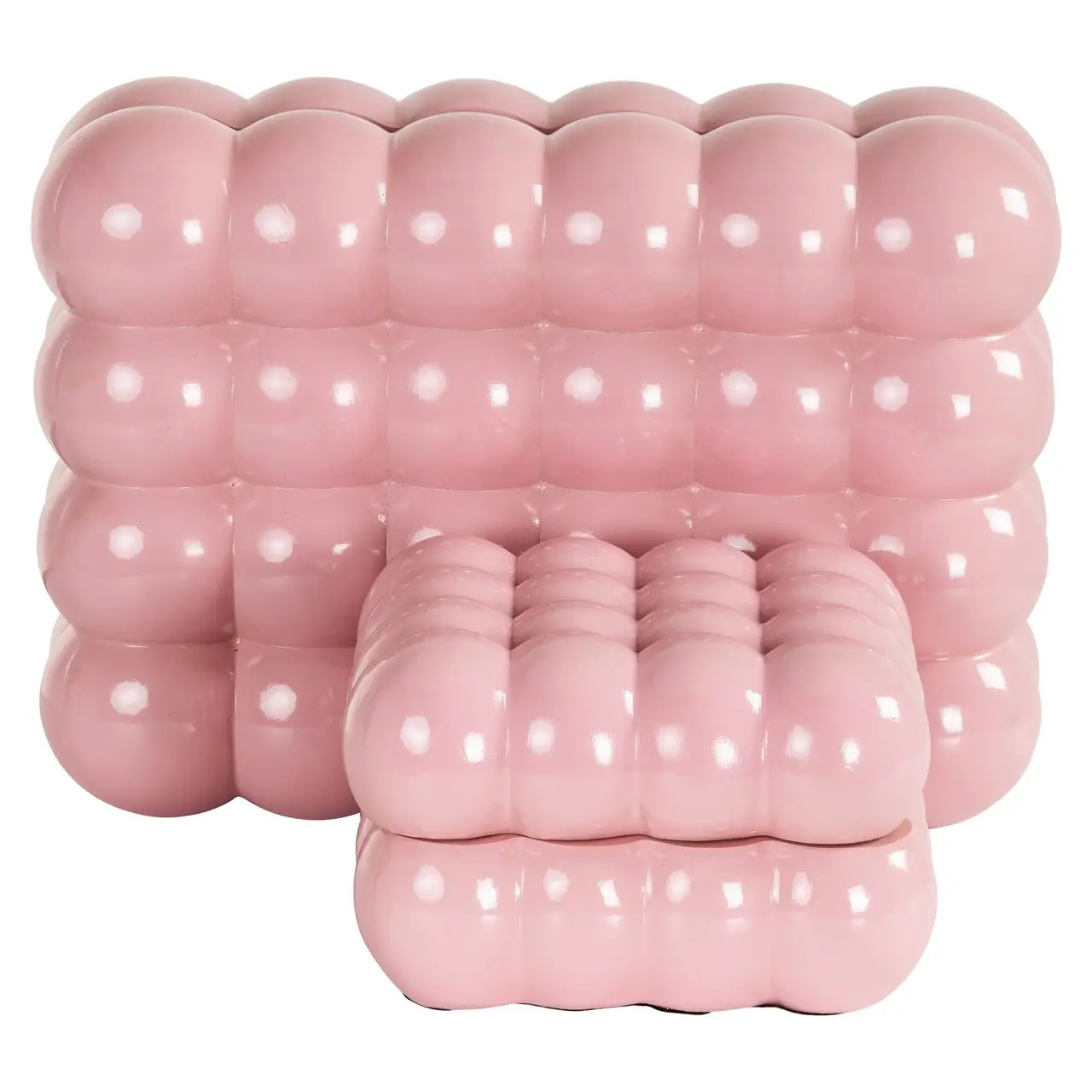 De opbergbox Cece in roze, groot formaat, is een opvallend en functioneel accessoire dat zowel stijl als praktische opbergruimte toevoegt aan je interieur. Met zijn unieke, bubbelvormige ontwerp trekt deze box onmiddellijk de aandacht en brengt een speels, modern element in elke ruimte. Ideaal voor het opbergen van diverse items zoals sieraden, sleutels of andere persoonlijke bezittingen, terwijl het tegelijkertijd fungeert als een decoratief stuk. De “Cece” opbergbox combineert functionaliteit met esthetiek, waardoor je ruimte georganiseerd en visueel aantrekkelijk blijft.