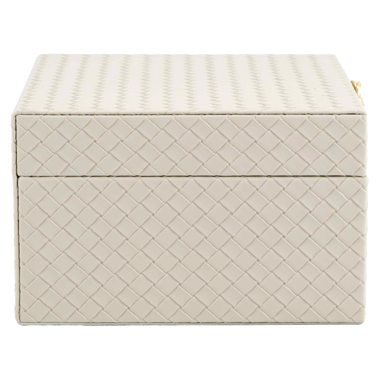 Een opbergbox in een lichte ivory tint. Het ontwerp zorgt voor een frisse en elegante uitstraling binnen de ruimte. Het ontwerp laat zich moeiteloos combineren met verschillende interieurstijlen en zorgt voor een rustige balans in de ruimte.