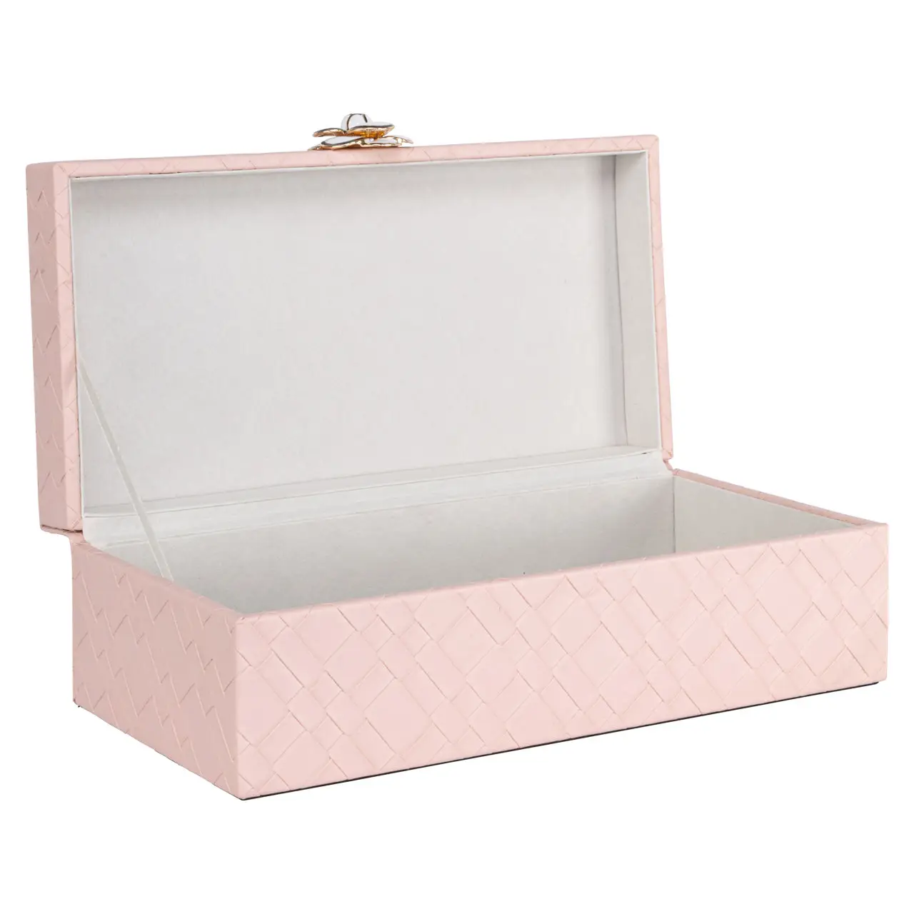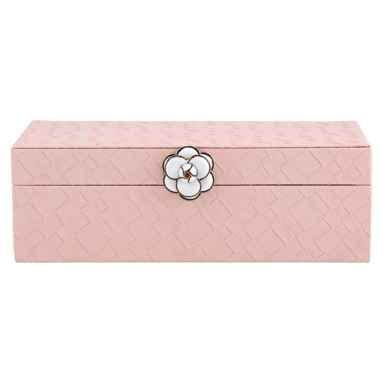 Deze opbergdoos valt op door haar zachte roze kleur en elegante uitstraling. Het decoratieve karakter maakt het item een charmant accent op een plank, kast of tafel. Tegelijkertijd biedt het een praktische oplossing om kleine accessoires netjes op te bergen.