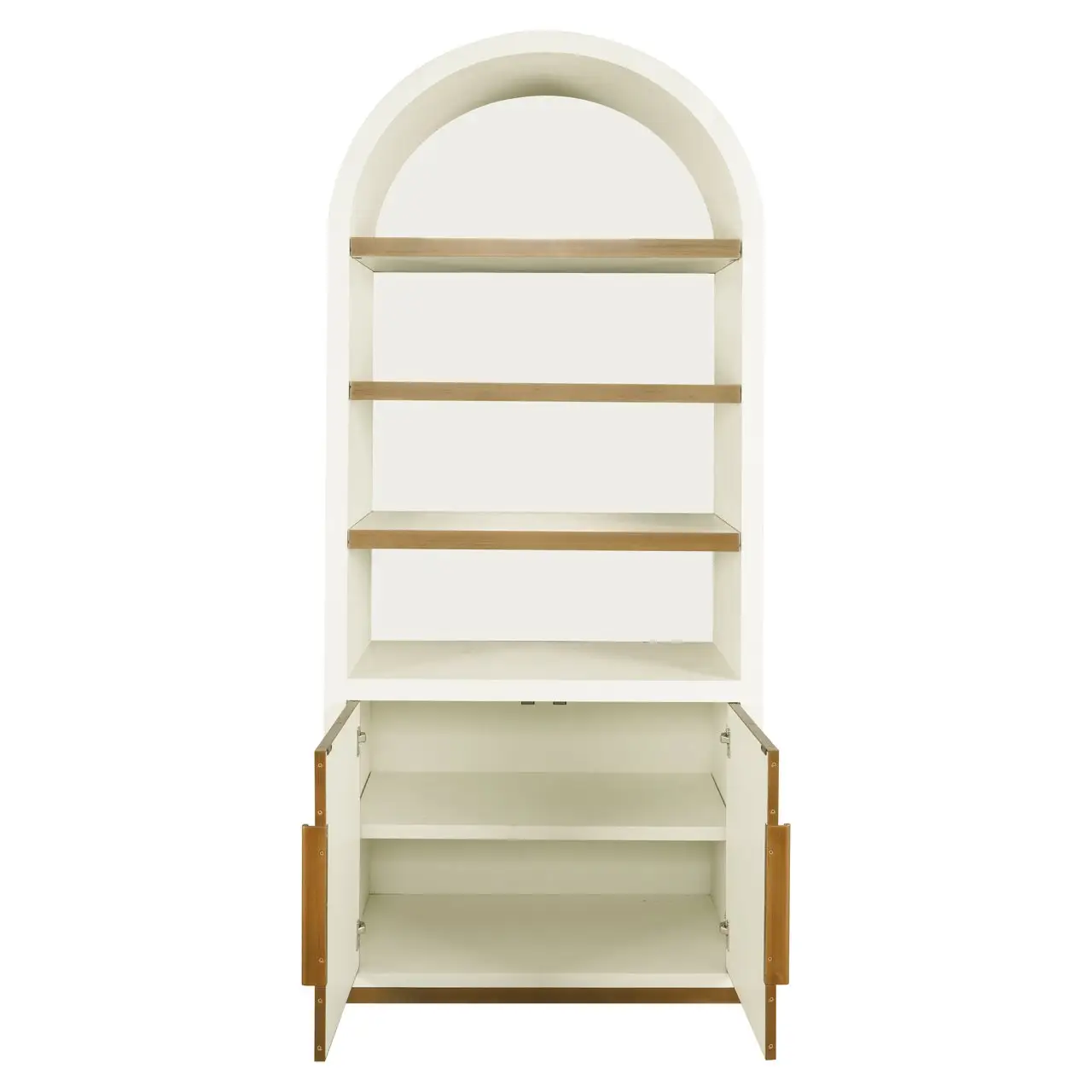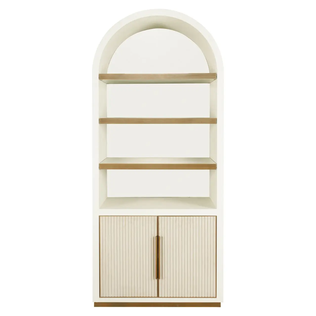 De Tivoli wandkast heeft een uniek rond ontwerp en combineert stijl met functionaliteit. Deze kast beschikt over twee deuren aan de onderkant voor afgesloten opbergruimte en drie open planken aan de bovenkant, perfect voor het uitstallen van boeken, decoraties of andere persoonlijke items. De afgeronde bovenkant geeft de kast een zachte en elegante uitstraling, terwijl de verticale lijnen op de deuren zorgen voor een moderne touch. Deze kast is een verfijnde en praktische toevoeging aan elk interieur, ideaal voor zowel woonkamers als slaapkamers.