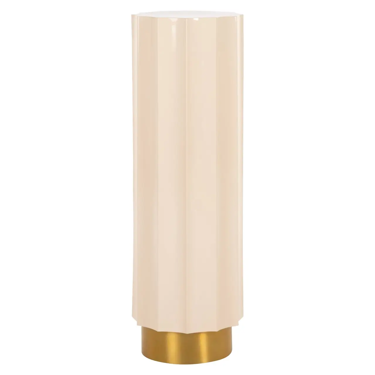 De Isabelle pilaar is een elegant en strak vormgegeven meubelstuk, vervaardigd uit ijzer. Het ontwerp wordt gekenmerkt door zijn geometrische, gefacetteerde vormen die de pilaar een moderne en stijlvolle uitstraling geven. De basis is voorzien van een subtiele gouden afwerking, wat een vleugje luxe toevoegt aan het geheel. Deze stevige en duurzame pilaar is perfect als decoratief element in diverse interieurs, ideaal voor het presenteren van kunstwerken, vazen of andere decoratieve items. De Isabelle pilaar voegt verfijning en klasse toe aan elke ruimte.