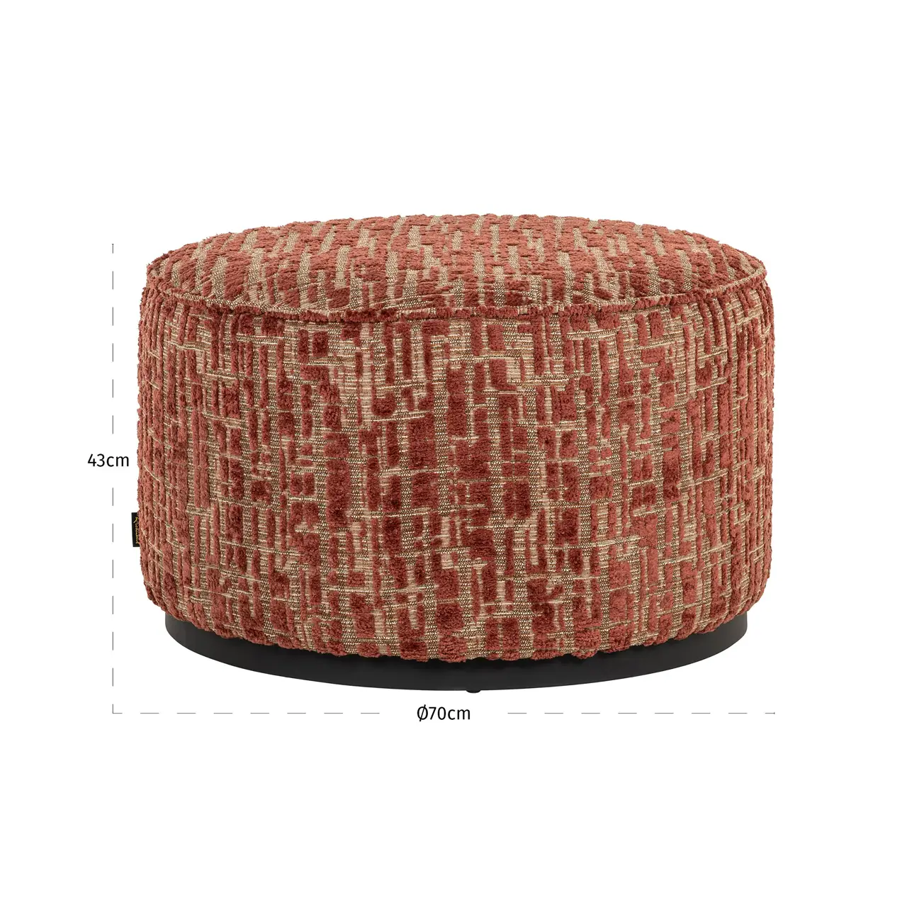 Een ronde pouffe met een verfijnde en speelse uitstraling. Het beige chevron dessin geeft het ontwerp subtiele dynamiek, terwijl de zachte bekleding zorgt voor comfort. Ideaal als extra zitplaats of als voetenbank binnen een zithoek. Een compact accent dat warmte en textuur toevoegt aan de ruimte.