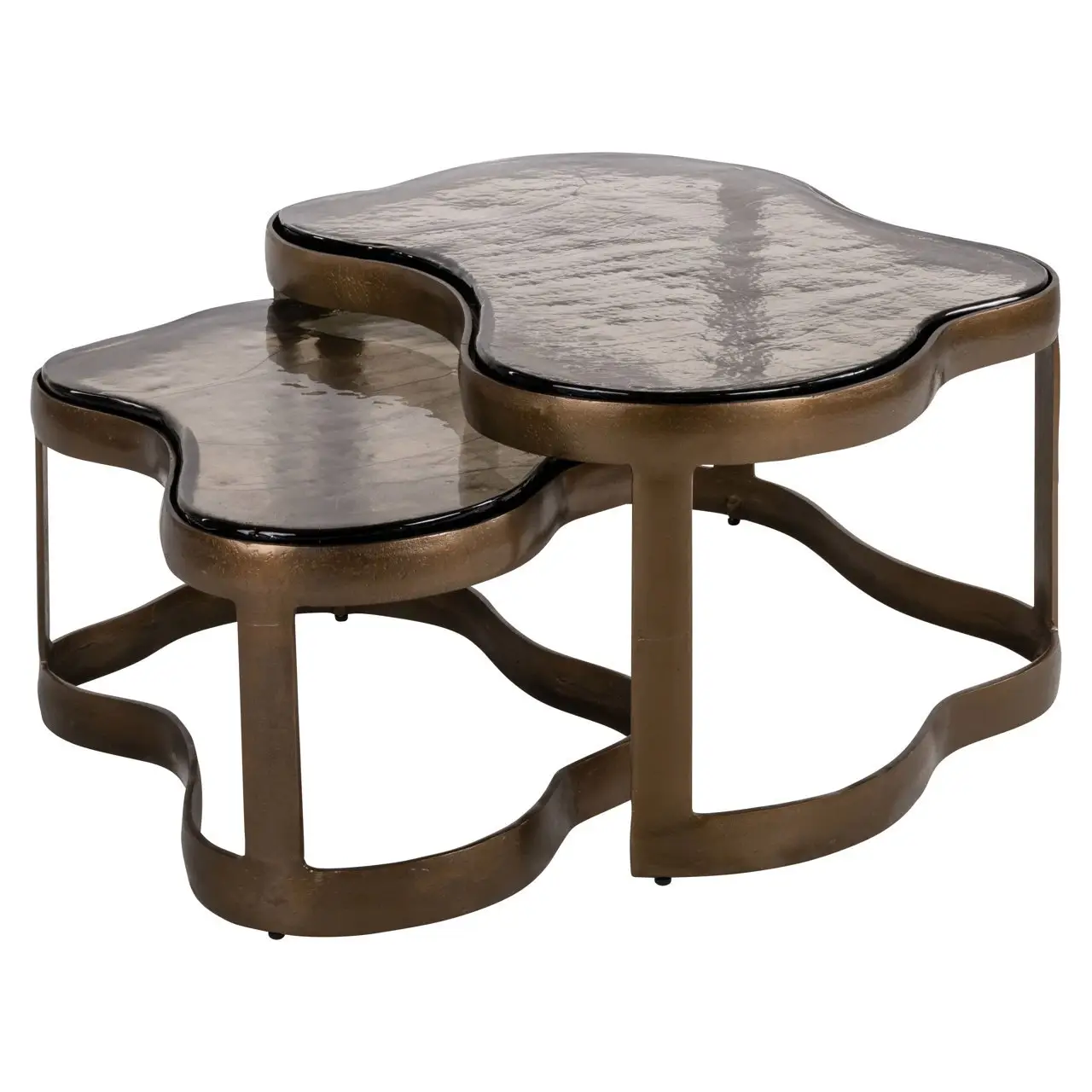 Set van 2 Fairfield salontafels in antiek messing – stijlvol, veelzijdig en decoratief.