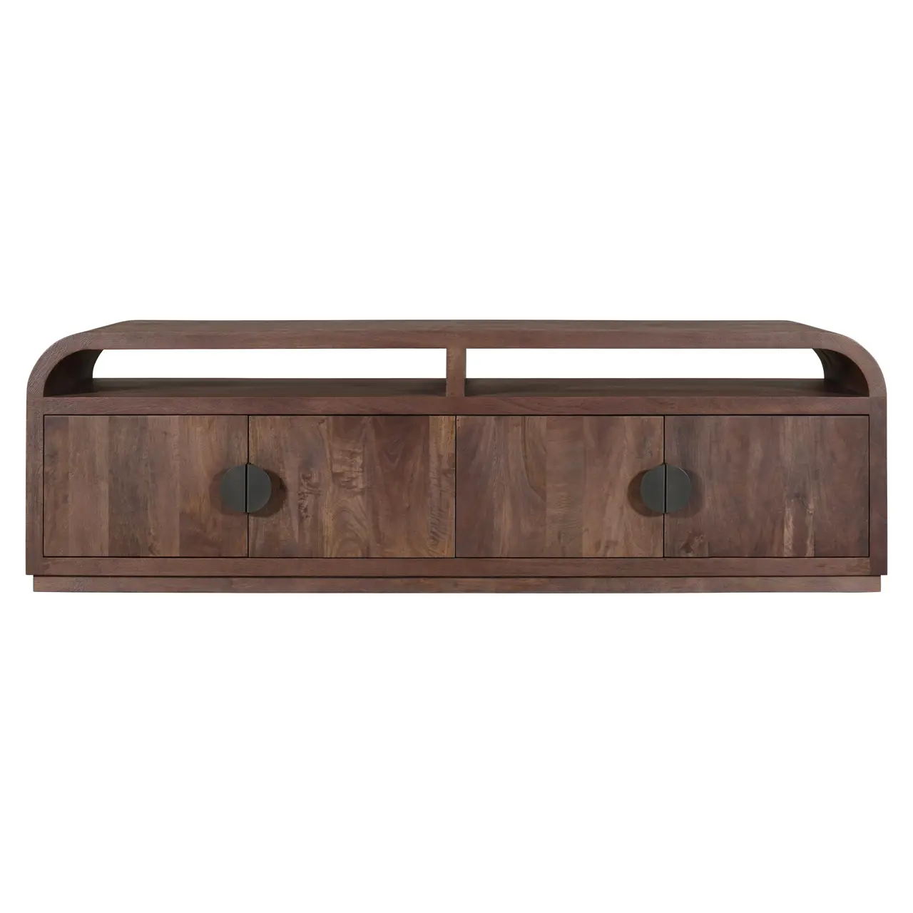 Een stijlvol tv-meubel dat rust en structuur brengt in de woonkamer. Het ontwerp biedt ruimte voor apparatuur en accessoires. Tegelijk vormt het een elegant middelpunt binnen de zithoek. Het ontwerp laat zich moeiteloos combineren met verschillende interieurstijlen en zorgt voor een rustige balans in de ruimte.