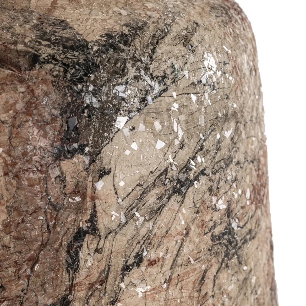 Vaas Dena small heeft een ronde vorm en een gespikkeld beige oppervlak. Een decoratieve vaas met natuurlijke tinten, perfect op zichzelf of gecombineerd met de grote versie.