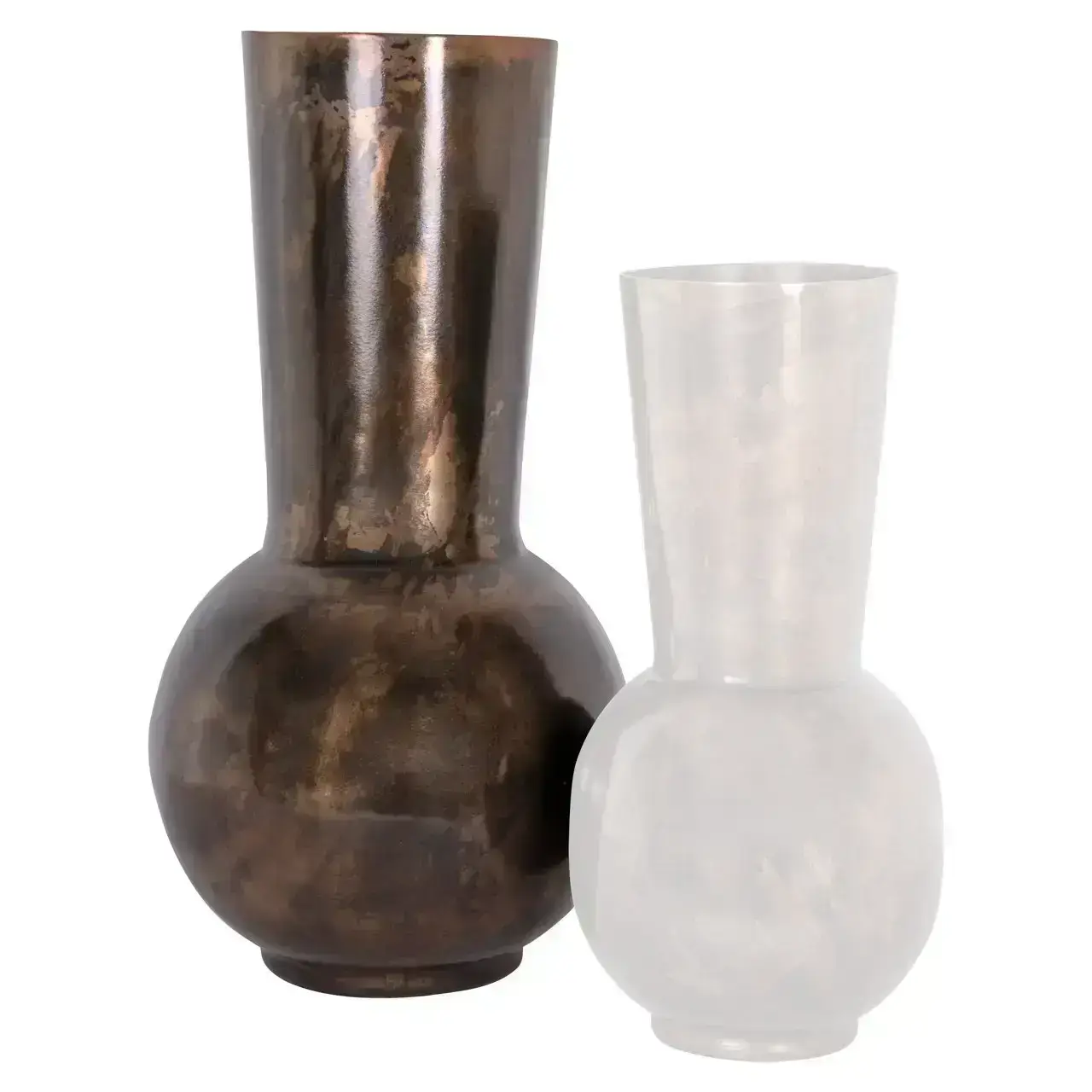 Vaas Jolise large heeft een uitlopende bovenkant en een glanzende koperkleurige afwerking. Een slanke en elegante vorm die het licht prachtig vangt.