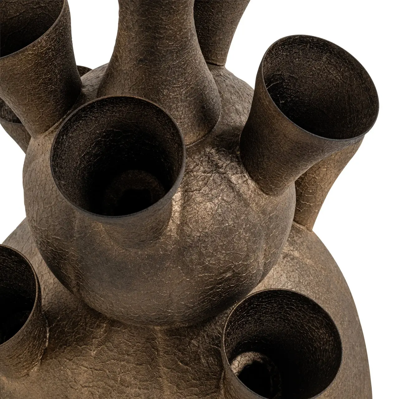 Vaas Maleen is gemaakt van metaal met een antieke messingafwerking. Met zijn decoratieve vorm en gedetailleerde bovenkant is het een opvallend object in elk interieur.