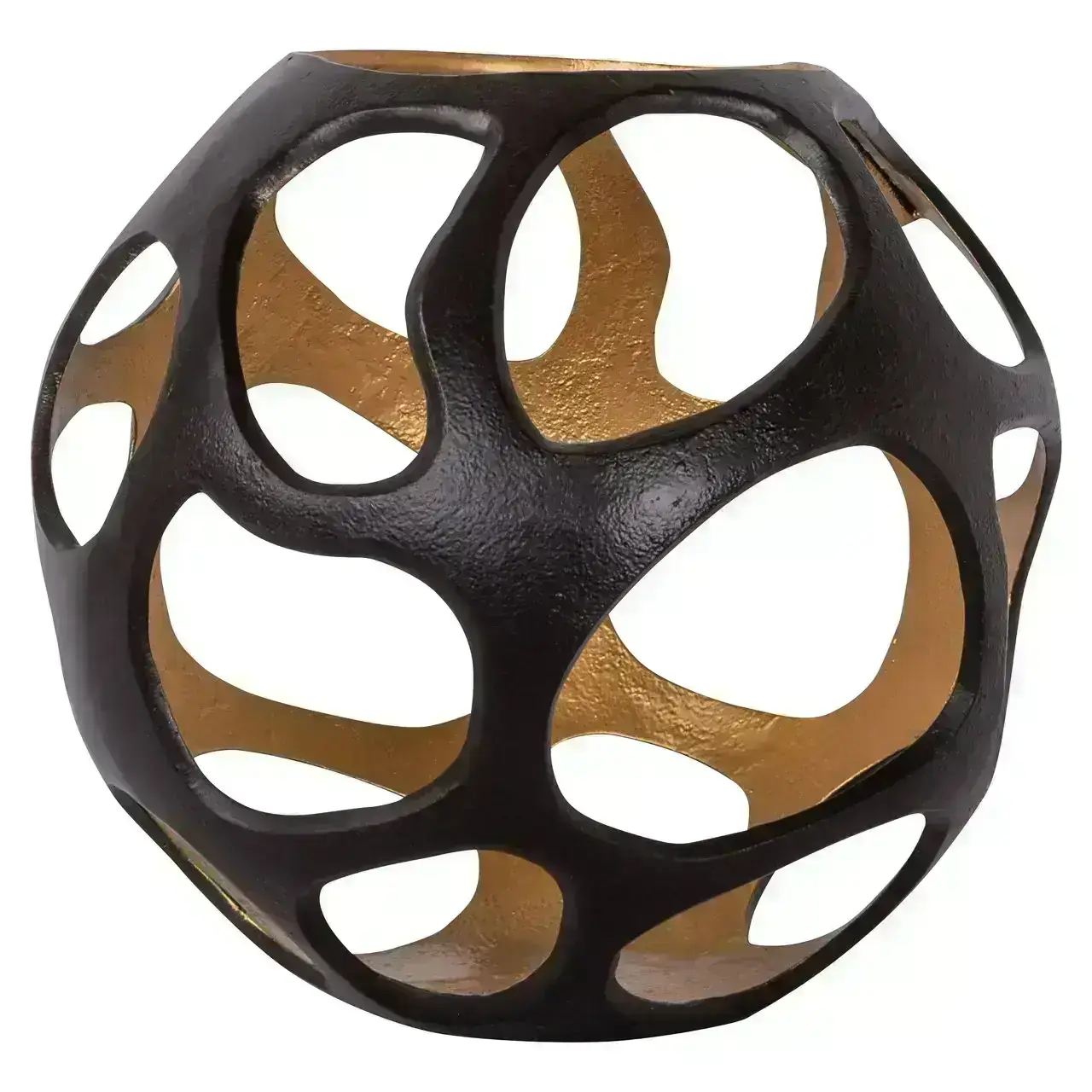 Windlicht Alysia large heeft een sculpturale open structuur in donkerbruin. De bolvorm voegt zowel textuur als stijl toe aan je interieur.