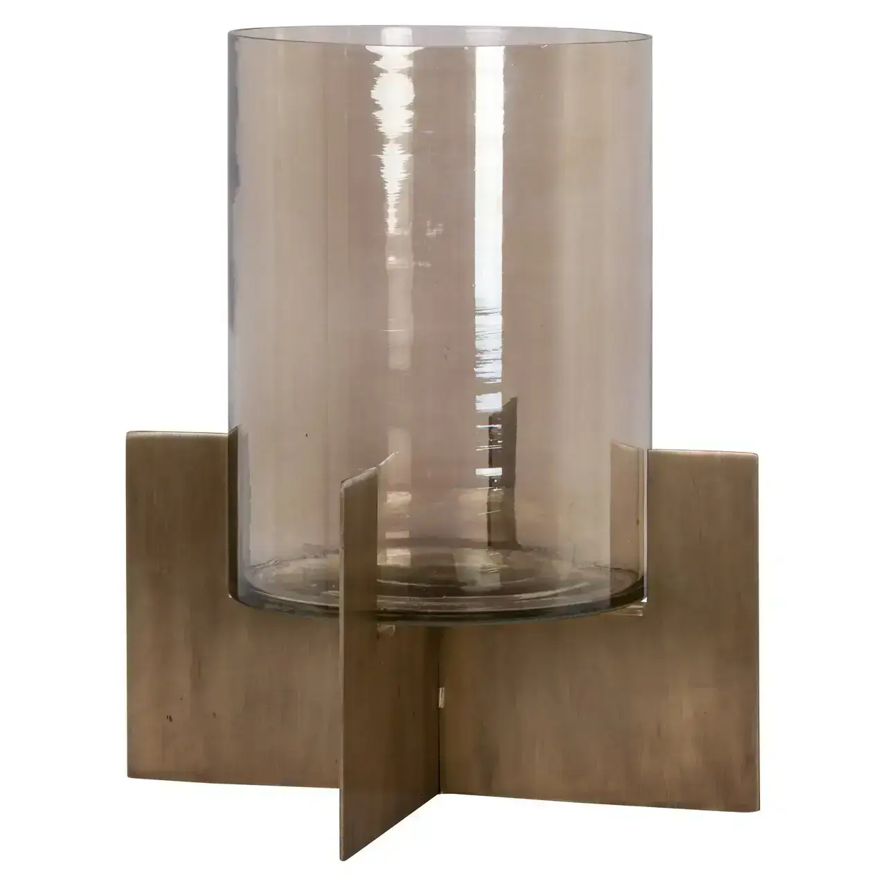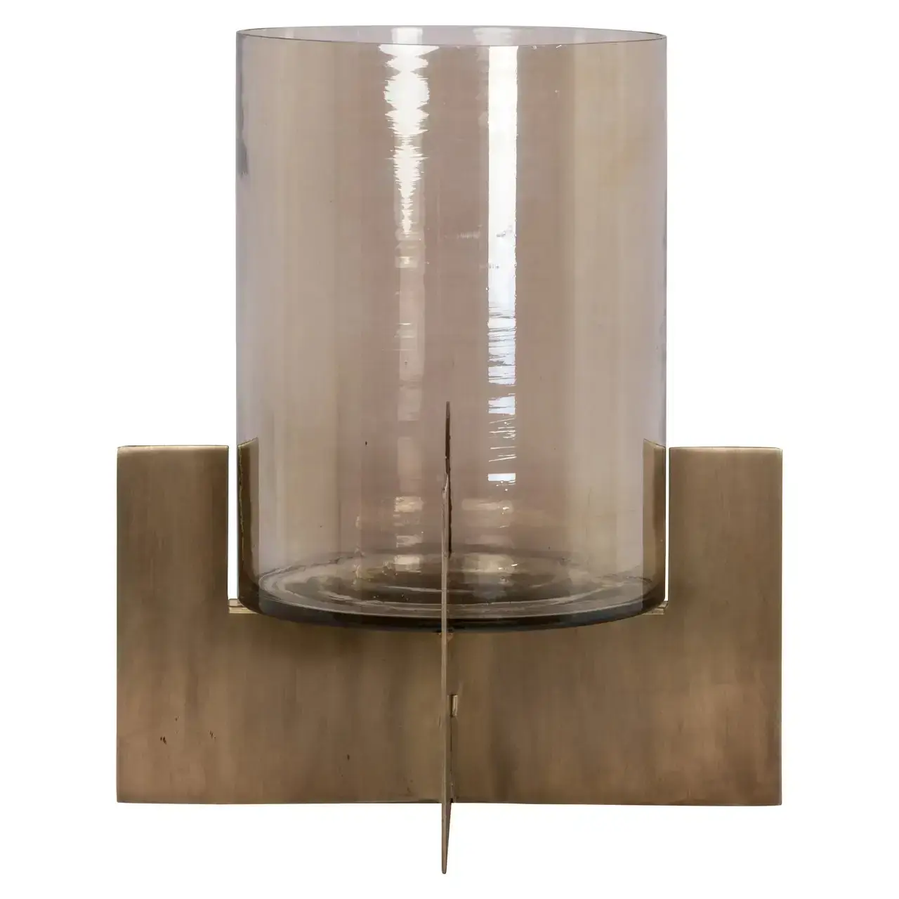 Windlicht Resa large heeft een hoekig silhouet en een gouden afwerking. Een gedurfde kandelaar die structuur en stijl toevoegt.