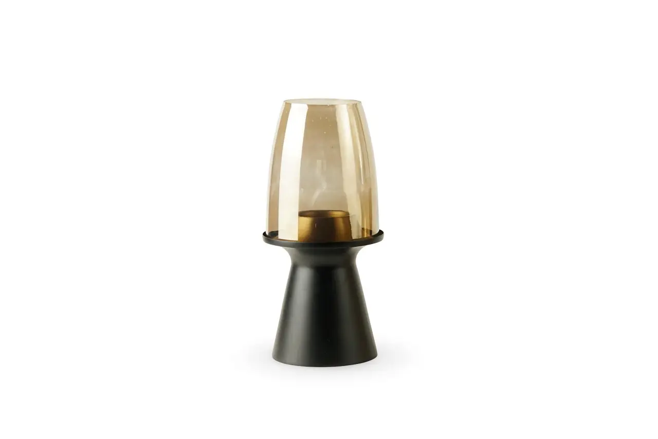 Windlicht Vienna small combineert een matzwarte basis met een glazen cilinder. Een stijlvolle kandelaar voor subtiele, sfeervolle verlichting.